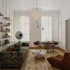 Inspiracją do stworzenia tego wnętrza była sama kamienica – jej monumentalne proporcje, wysokie sufity, sztukaterie i ogromne okna wypełniające przestrzenie naturalnym światłem. To one zadecydowały o kierunku aranżacji, w której historia splata się z nowoczesnością.