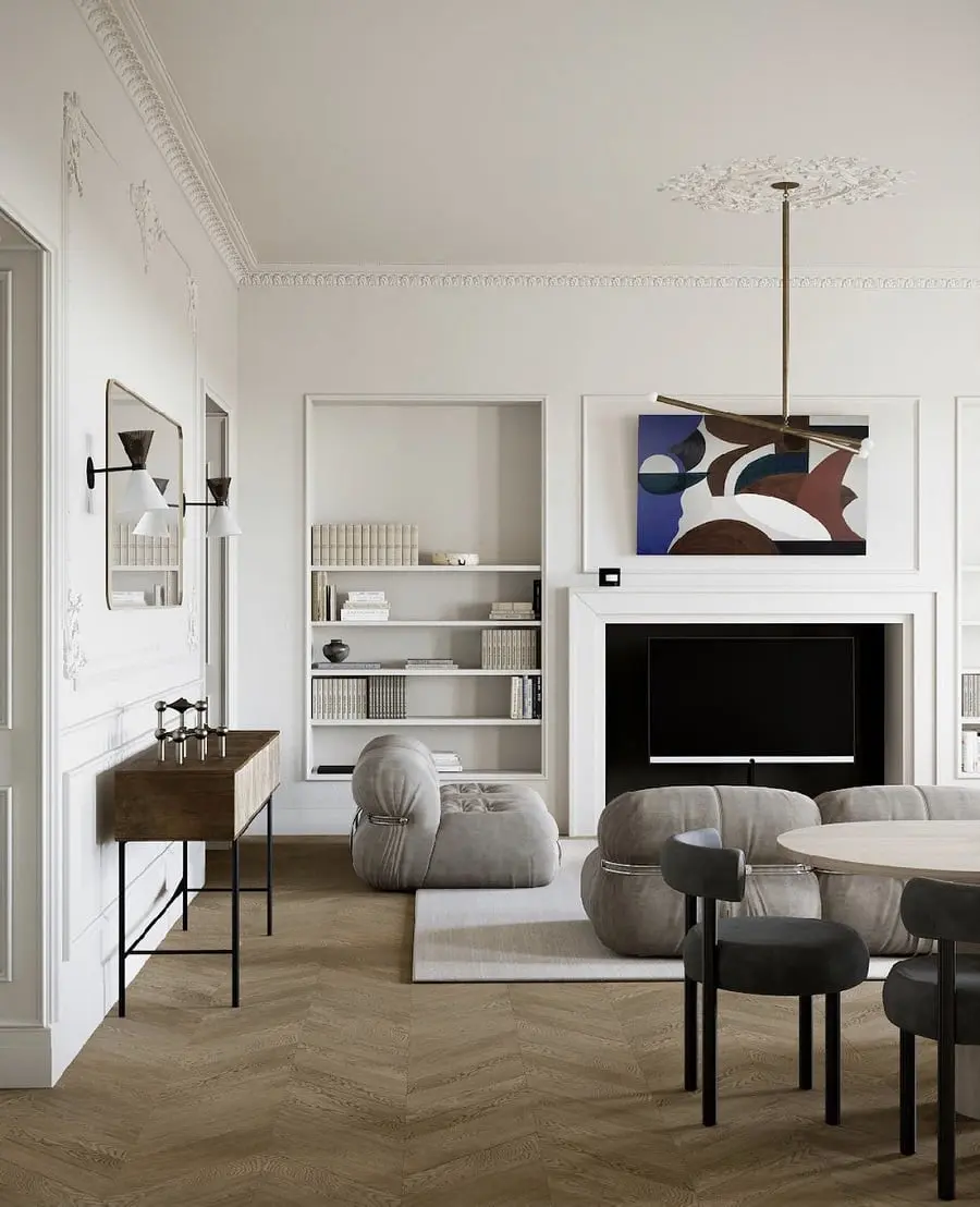 Architekta zdecydowała się na wybór naturalnych i dobrych jakościowo materiałów. Na ścianach ozdobna sztukateria podkreśla szlachetność wnętrza. Ozdoby ścienne przyjmują rozmaite kształty, wzory i wielkości. Tworzą na ścianach prawdziwe arcydzieła. Listwy dekoracyjne mają jeszcze jedną zaletę, są wyjątkowo uniwersalne w aranżacji. Sztukateria wpisuje się w styl nowoczesny, świetnie harmonizują z wnętrzami w stylu klasycznym, doskonale pasują do mieszkań o charakterze modernistycznym.