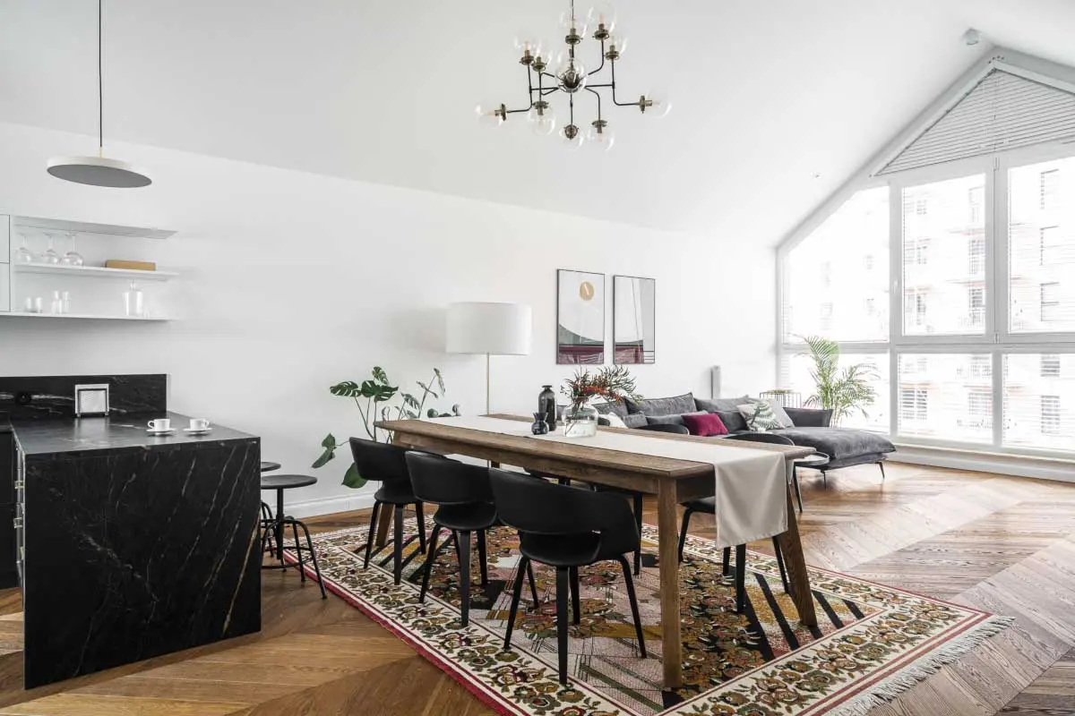 W apartamencie zlokalizowanym w samym sercu Gdańska zapanowała ciekawa gra różnymi stylami. Jak określa sama architektka – Karolina Karczewska (koncept.k) mamy tu do czynienia głównie z połączeniem klasyki z nowoczesnością. Dzięki wspaniałemu wyczuciu form, faktur i kolorów, nie ma tu mowy o przesycie czy przeroście formy nad treścią. Panujący we wnętrzu swoisty minimal eclectic doskonale wpisuje się nie tylko w klimat miejsca, ale przede wszystkim jest odpowiedzią na potrzeby inwestorów o wygodnym, oryginalnym, ale bez zbędnych bibelotów mieszkaniu, które pomieści rodzinę z dziećmi.