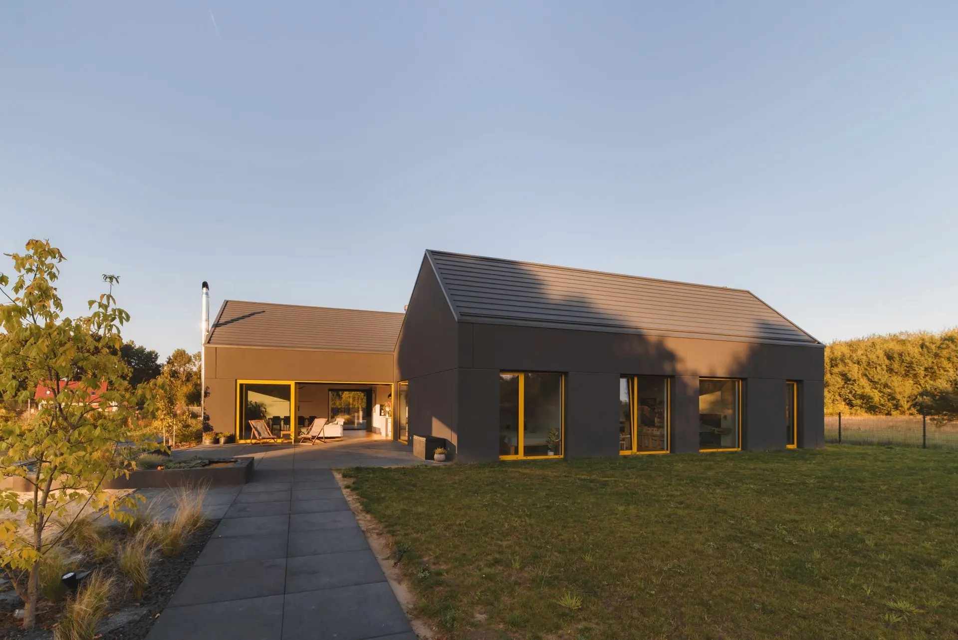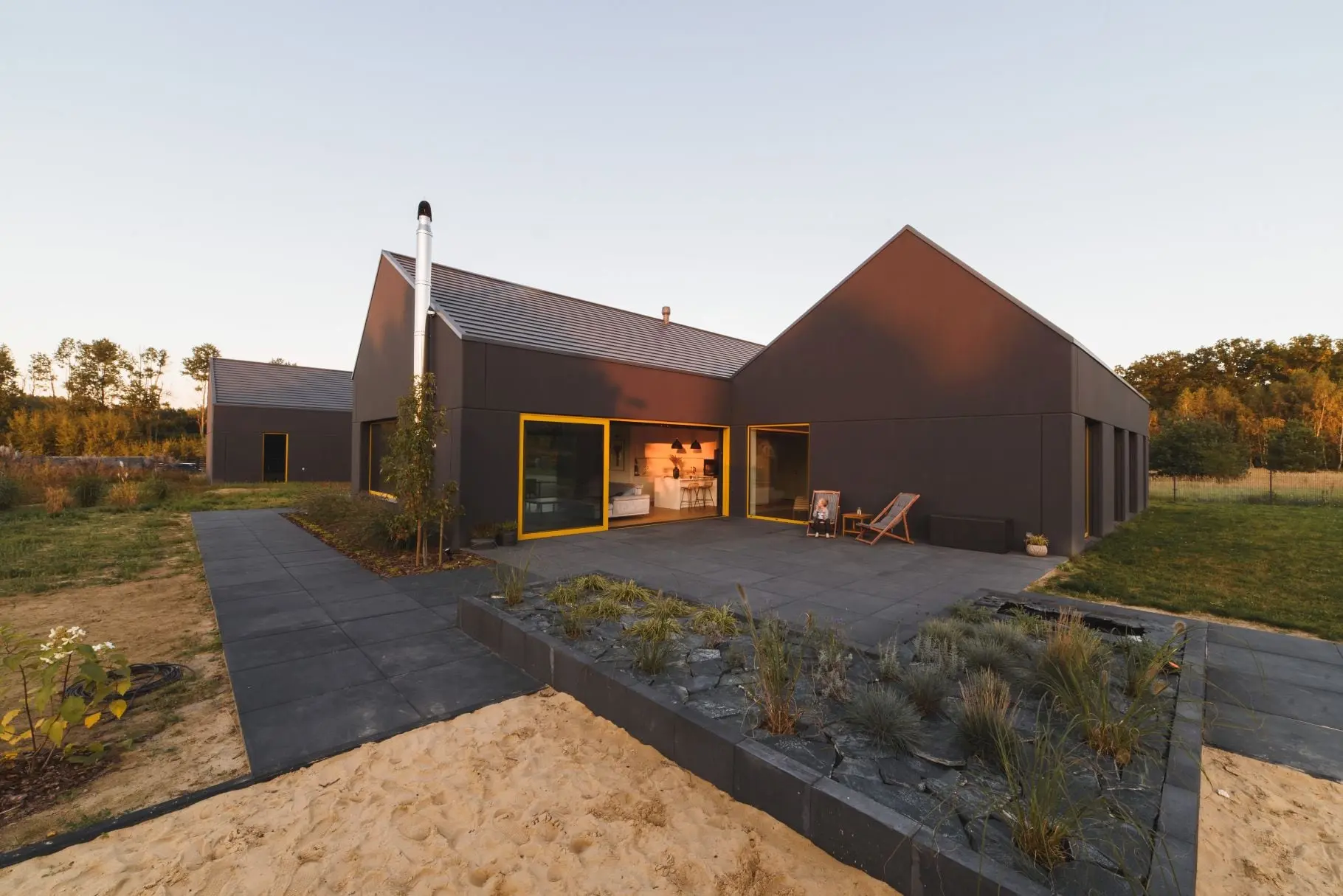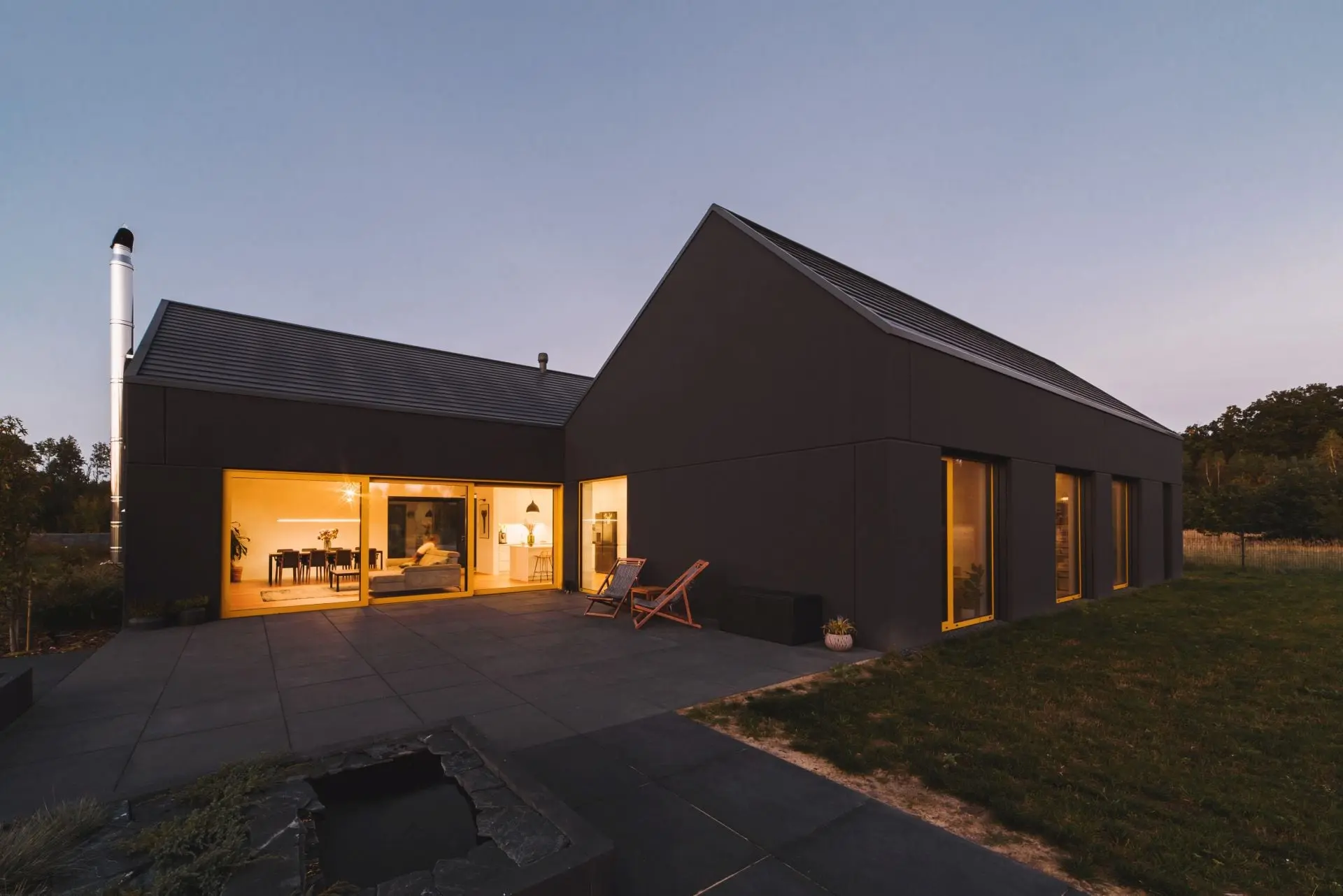 W Grzepnicy, niewielkiej miejscowości pod Szczecinem, w otoczeniu łąk i lasów stanął wyjątkowy dom zaprojektowany przez biuro architektoniczne maxberg. Prosta, ciemna, asymetryczna bryła budynku została wykonana w nowoczesnej technologii, która rzutuje nie tylko na właściwości obiektu, ale też na jego estetykę.