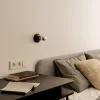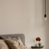 Prywatnym pomieszczeniem jest sypialnia, w której znajdziemy duże łóżko z szarym tapicerowanym zagłówkiem. Obok stoi czarne biurko zaprojektowane specjalnie na potrzeby tego wnętrza oraz sprytnie ukrytą za zasłoną garderobę.