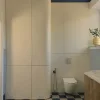 Choć remont objął jedynie fragment mieszkania – około 30 m² – to skala przemian była ogromna. Przestrzeń, w której wcześniej mieściły się dwie małe łazienki, niefunkcjonalna kuchnia i dawna służbówka, została całkowicie przeprojektowana. Efektem jest wyrafinowane, komfortowe i pełne światła wnętrze.