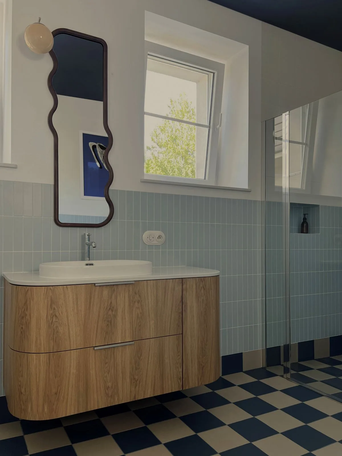 W ostatnich latach wiele osób podąża za trendami, często zapominając o sobie. W tym projekcie było inaczej. Inwestorzy z przekonaniem mówili, że nie przepadają za kamieniem naturalnym, że blat musi być dębowy, a płytki – dokładnie te, które sobie wymarzyli. I to było inspirujące