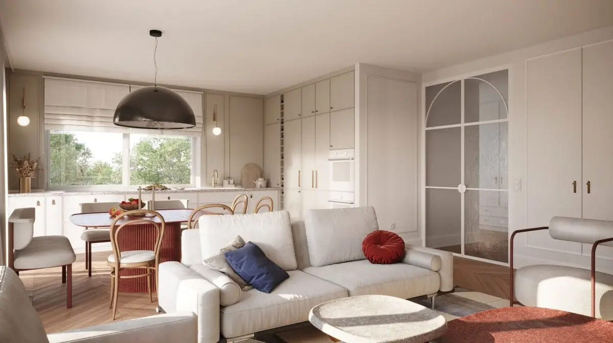 Idealne proporcje pomiędzy tym, co nowoczesne a klasyczne. A wszystko to w otulinie intrygującego bordo, który jak żaden inny kolor potrafi w przewrotny sposób ożywić aranżację. Taki pomysł na wnętrze miała arch. Marta Jemioł (Jemioł Concept). To tu pośród tradycyjnych elementów, takich jak sztukaterie, dębowy parkiet czy giętych mebli, znajdziemy modernistyczne formy. Szerokim echem odbijają się akcenty zaczerpnięte z bauhausowskiej myśli projektowej. Nie brakuje również inspiracji modnym stylem japandi. Sam opis zapowiada, że wnętrze jest bardzo ciekawe i w rzeczy samej takie właśnie jest.