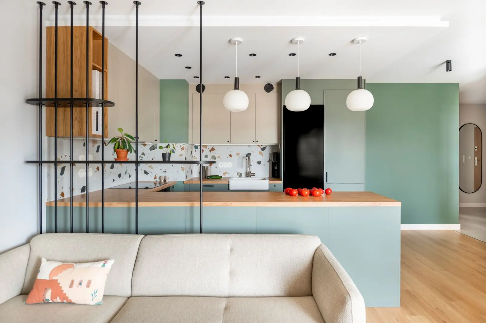 Wnętrze, które zaprojektowała architekt Monika Rybicka prowadząca autorską pracownię mo.studio jest wyrazem harmonijnego połączenia współczesnych trendów z ciepłem i przytulnością, której tak często brakuje w minimalistycznych aranżacjach. Projekt ten łączy funkcjonalność i estetykę, oferując przestrzeń, która jest zarówno dynamiczna, jak i kojąca, idealnie odpowiadając na potrzeby nowoczesnego stylu życia.