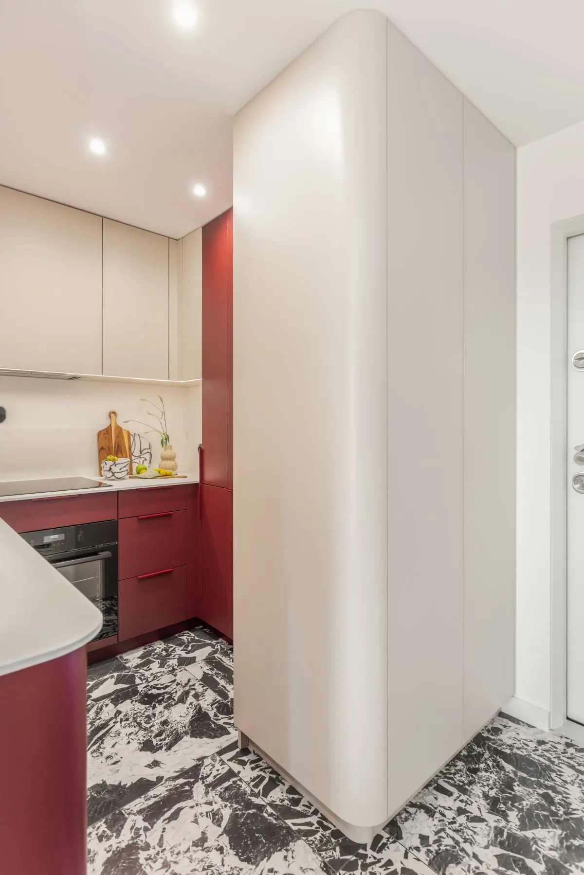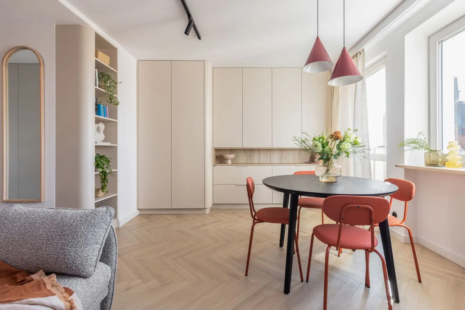 Po przeprowadzeniu gruntownych prac rozbiórkowych, architekci przystąpili do projektowania wnętrza. Kluczowym elementem była optymalizacja przestrzeni, aby każdy centymetr był wykorzystany w sposób inteligentny. Zastosowano rozwiązania, takie jak wbudowane szafy, wysuwane meble i funkcjonalne rozkładane stoły, które umożliwiają elastyczne użytkowanie pomieszczeń.