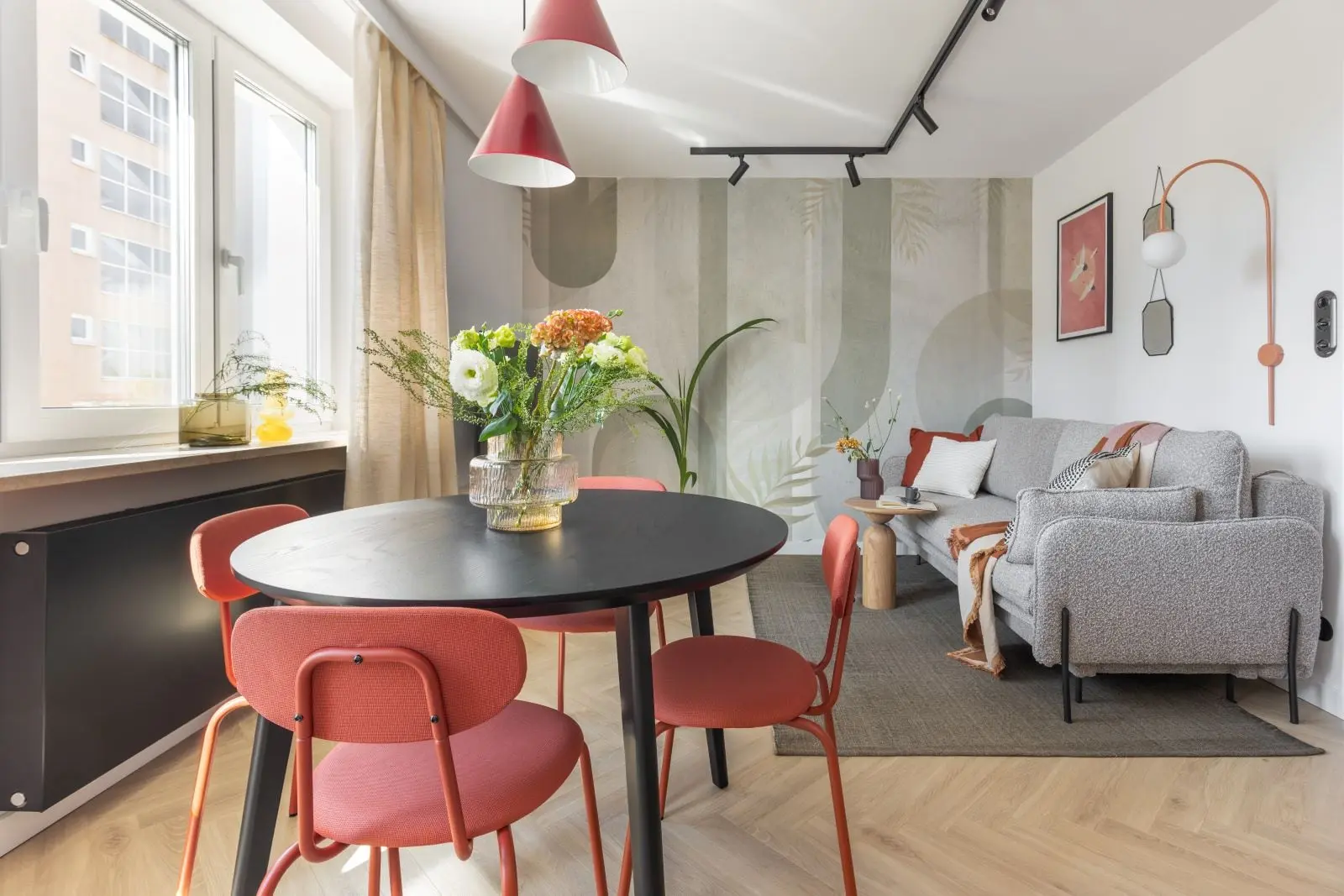 Kolejnym istotnym aspektem projektu było wprowadzenie odpowiedniego oświetlenia. Jasne, naturalne światło jest niezwykle ważne, zwłaszcza w niewielkich przestrzeniach. Architekci zadbali o duże okna, które zapewniają dostęp do światła dziennego, a także zastosowali inteligentne rozwiązania oświetleniowe, takie jak szynoprzewody, aby optymalnie rozproszyć światło w całym mieszkaniu.