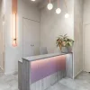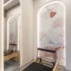 Ogromną rolę odegrała współpraca z właścicielką studia. To ona zasugerowała, by symbolem miejsca został liść miłorzębu, motyw o głębokiej symbolice – odrodzenia, siły i równowagi. Tapeta z tym motywem stała się centralnym punktem wnętrza, a ginko znalazło swoje miejsce także w logo salonu, spajając w całość filozofię marki i przestrzeni.