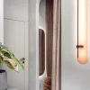 Lokal, choć usytuowany w pięknym miejscu z widokiem na konstanciński skwer i staw, nie otrzymuje wiele naturalnego światła. Dlatego ogromne znaczenie ma tu oświetlenie – różne rodzaje lamp, kinkietów i LED-ów budują nastrój i równomiernie doświetlają wnętrze. Efekt? Przestrzeń ma kameralny, ciepły charakter, a jednocześnie jest jasna i przyjazna.