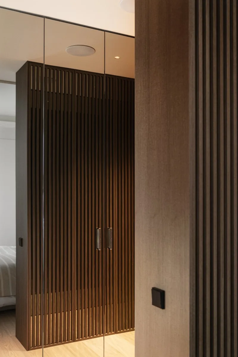 Projekt mieszkania jest przemyślany nie tylko pod kątem ergonomicznym, ale również zadbano tu o estetykę charakterystyczną dla Kraszewskiej. Podstawę stanowi dbałość o detale i najwyższą jakość oraz personalizowane rozwiązania, które z powodzeniem realizuje dzięki współpracy ze sprawdzonymi wykonawcami. – Wszystkie drzwi wykonane według naszego projektu są lustrzane, aby maksymalnie powiększyć przestrzeń – zdradza architektka.
