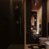 Dom mieści trzy łazienki, z których każda została potraktowana jak osobna opowieść – zarówno pod względem funkcjonalnym, jak i wizualnym: