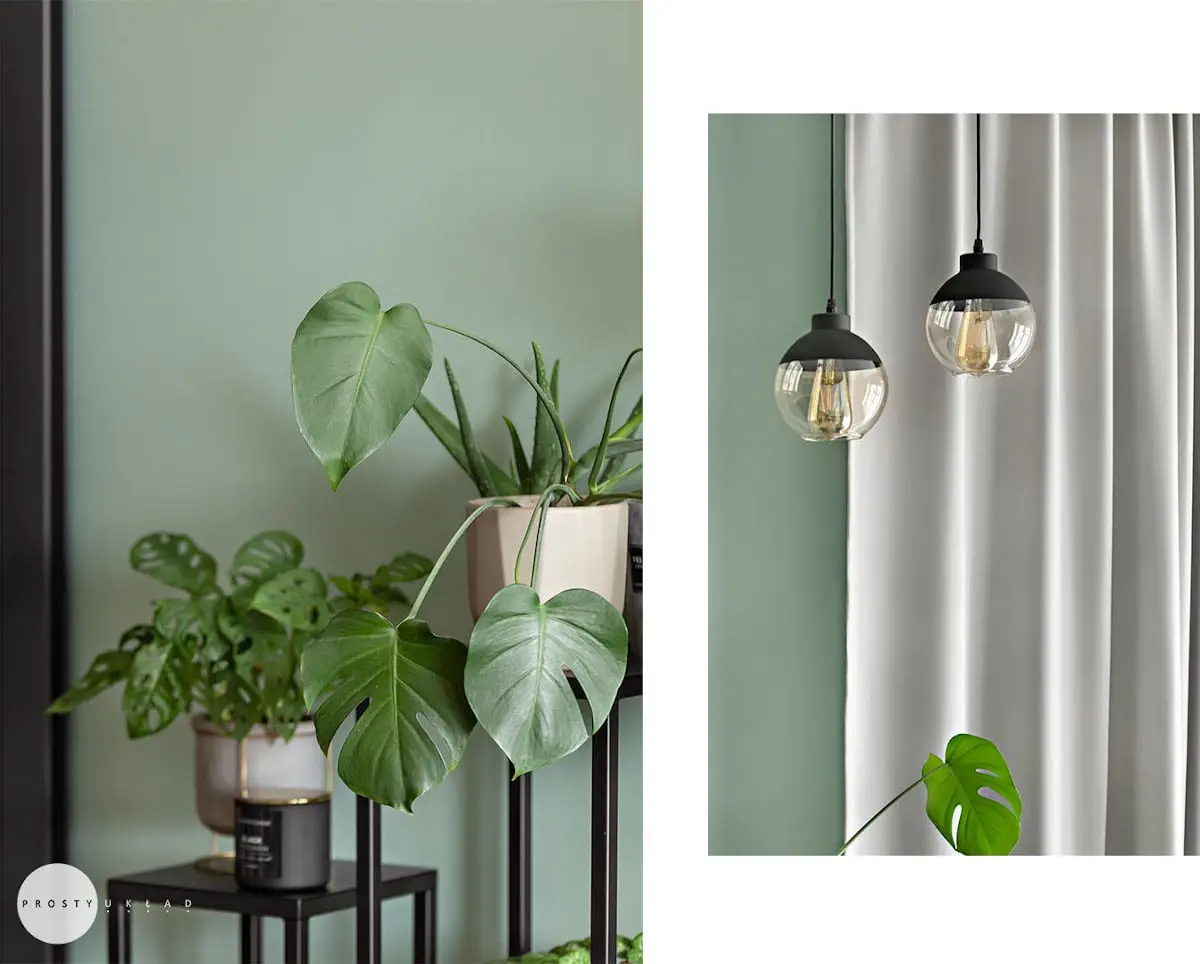 Wnętrza emanujące harmonią otulają przyjazną aurą. Pozwalają na relaks, wyciszenie a fakt, że dobrze czujemy się w danym miejscu, ma wpływ na doznanie wewnętrznej równowagi. Zieleń, która stanowi jeden z motywów przewodnich projektu wraz z obecną tu żywną roślinnością niewątpliwie wprowadza w taki stan, tym bardziej, że jej obecność jest pomysłem właścicieli. Połączenie barwy tak silnie kojarzącej się z naturą ze spokojnym antracytem pozwoliło stworzyć przestrzeń pełną domowego ciepła.