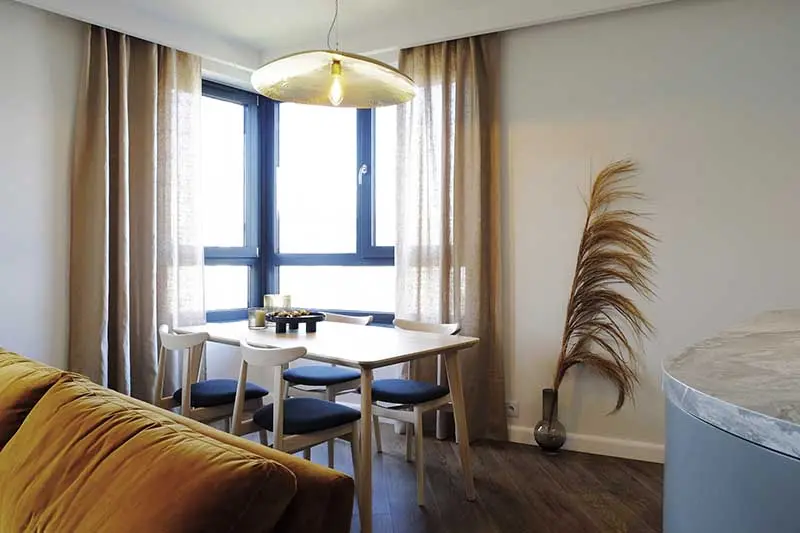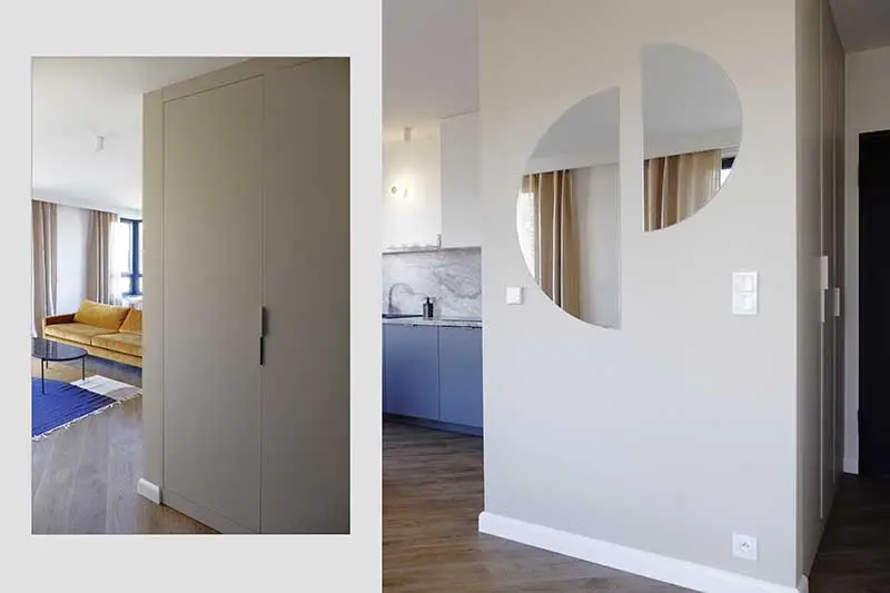 Założeniem projektu było stworzenie jak największej możliwej funkcjonalnej i wygodnej w użytkowaniu powierzchni. Architekt Małgorzata Caban postawiła na indywidualne rozwiązania. Na specjalne zamówienie zostały zrealizowane wszystkie meble, aby każdy centymetr mieszkania był dobrze wykorzystany. Nie znajdziemy w tym apartamencie dużo mebli wolnostojących, a chodzi głównie o zachowanie jak największej przestrzeni.