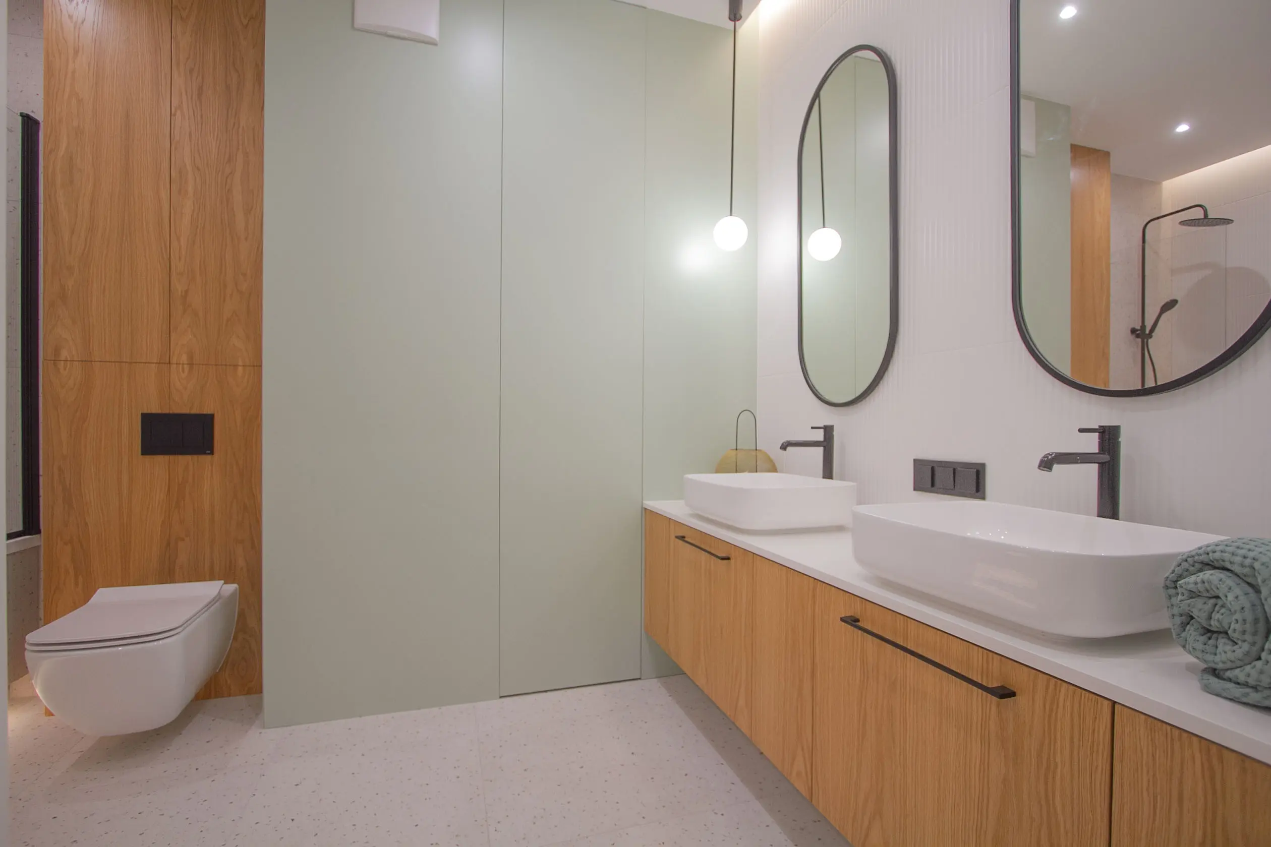 Kuchnia w nowoczesnym mieszkaniu to przykład połączenia funkcjonalności z estetyką. Jasne ściany i podłogi nadają wnętrzu świeżości, a zielone fronty mebli wprowadzają element natury i energii. Zieleń to barwa, która kojarzy się z harmonią i spokojem, idealnie kontrastując z neutralnymi odcieniami reszty mieszkania. Meble kuchenne, wykonane z nowoczesnych materiałów, łączą estetykę z wytrzymałością, a odpowiednio dobrane oświetlenie podkreśla ich elegancję.