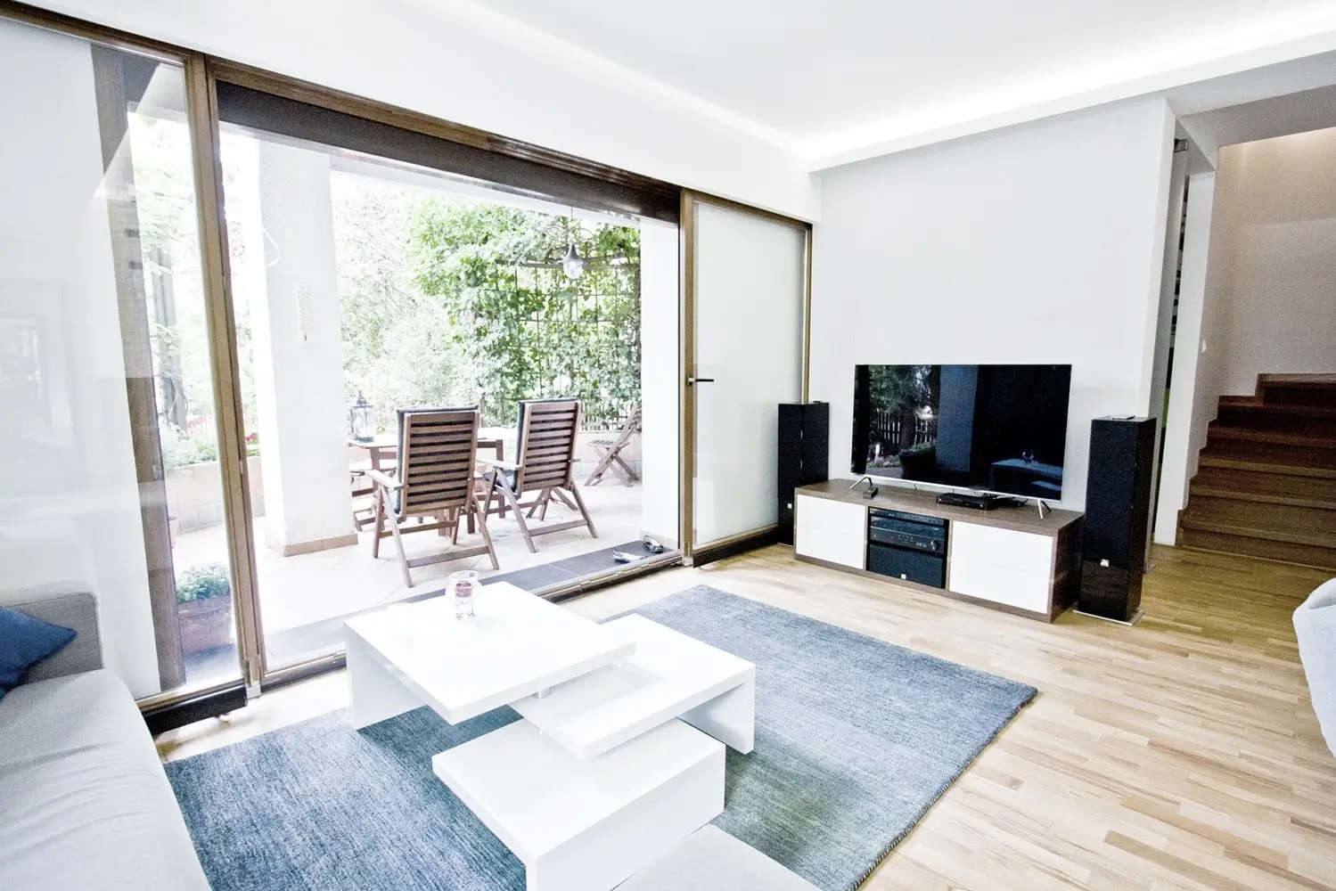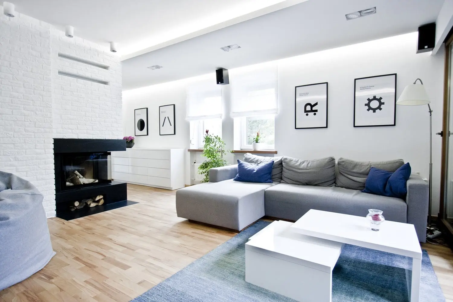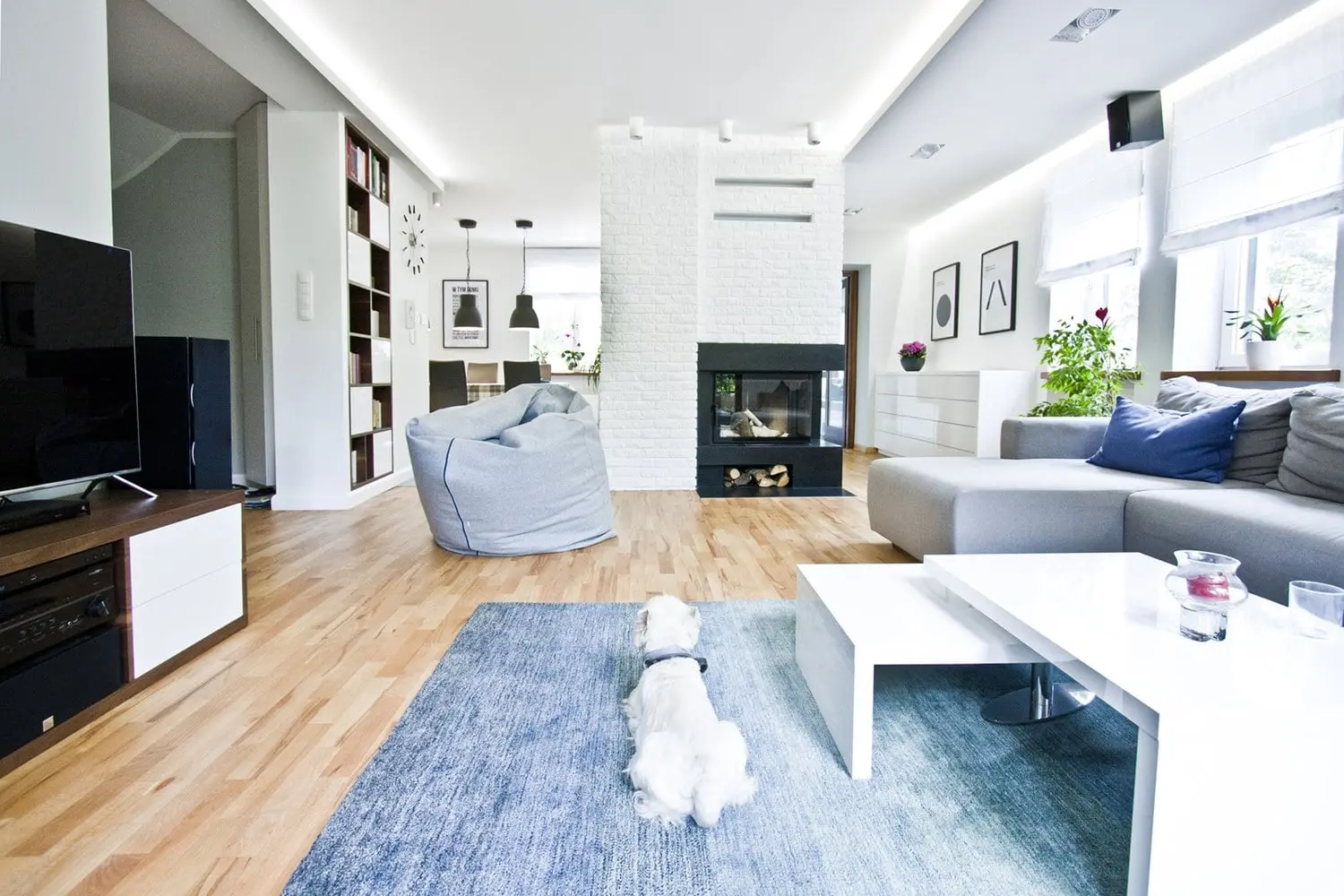 Projekt nowoczesnego domu, w którym skandynawska biel idealnie łączy się z błękitami i drewnem.