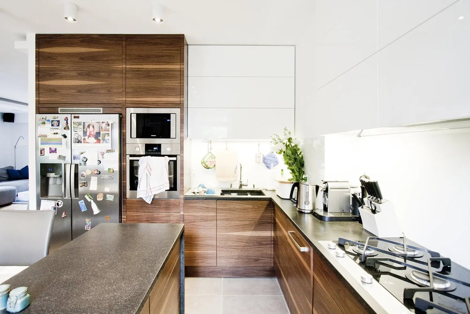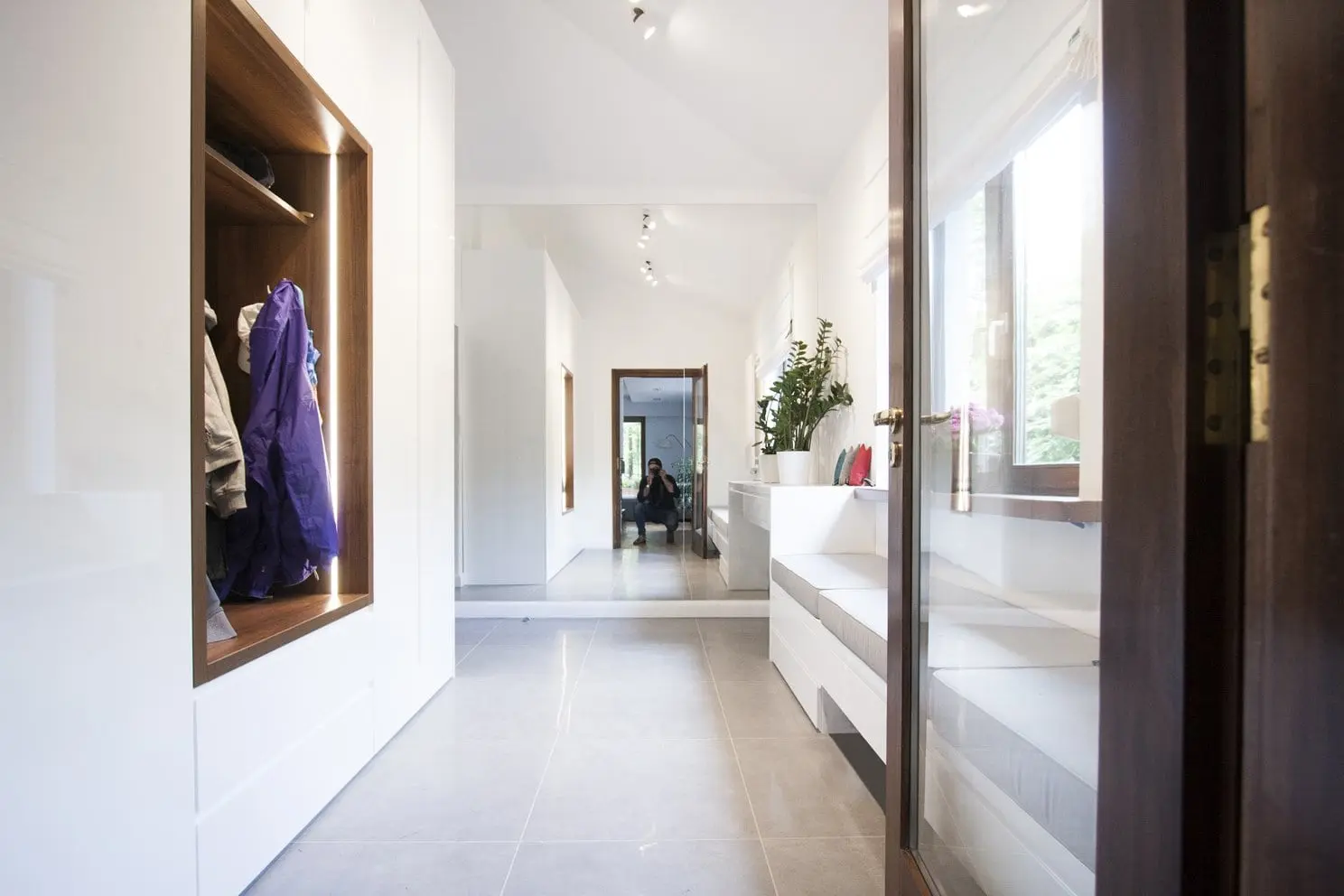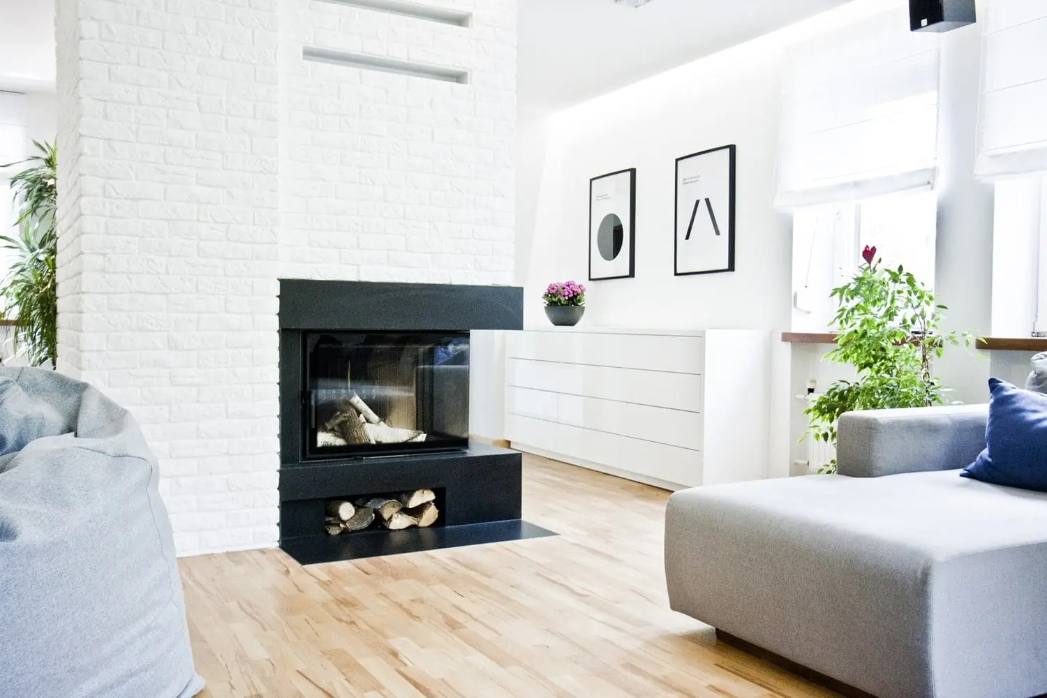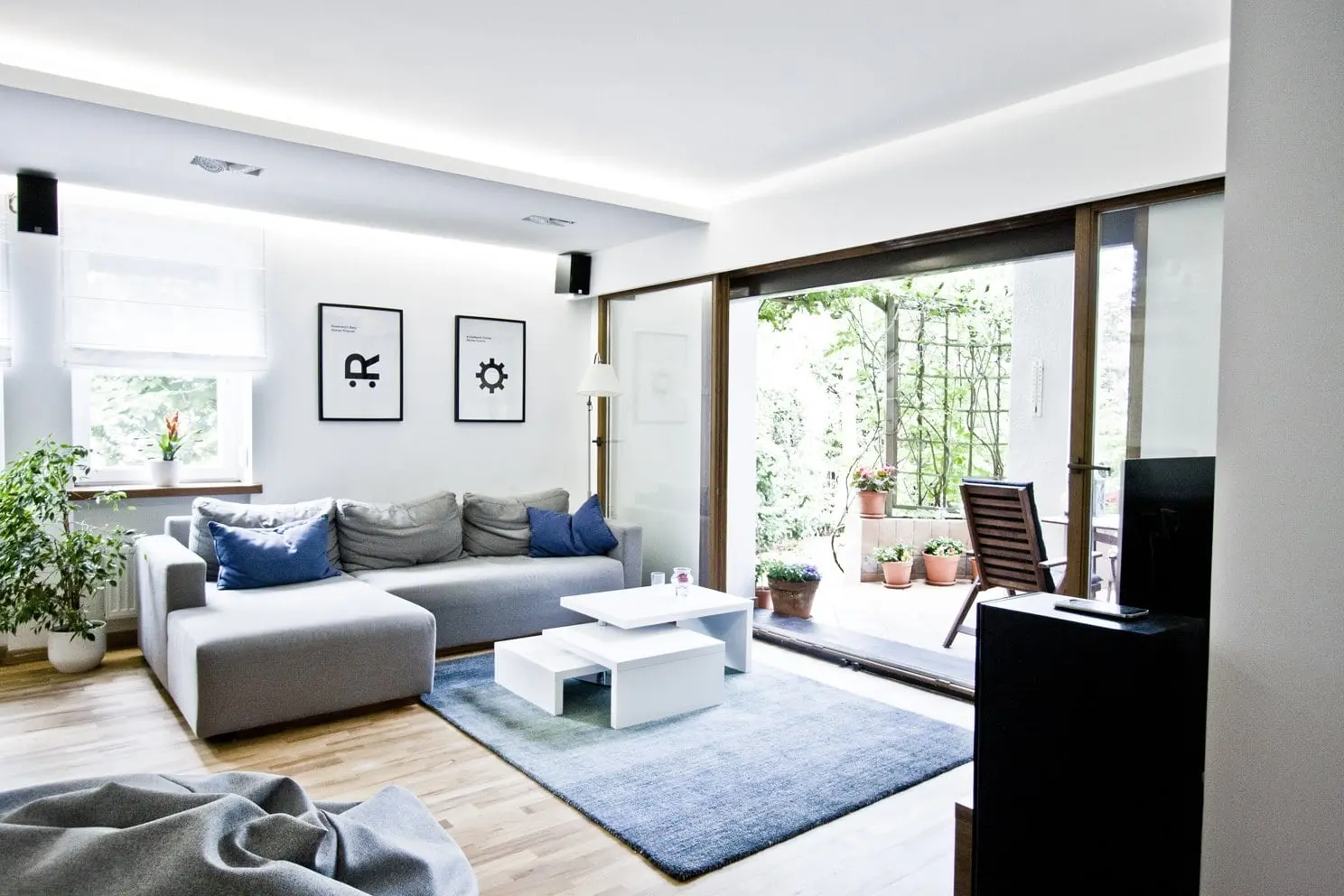 Projekt nowoczesnego domu, w którym skandynawska biel idealnie łączy się z błękitami i drewnem.