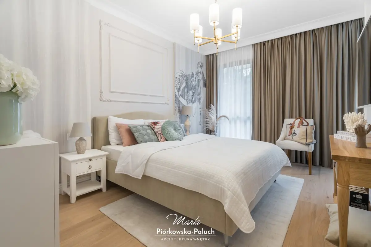 ,,Głównym elementem dekoracyjnym sypialni jest tapeta z ikoną haute couture – Coco Chanel.