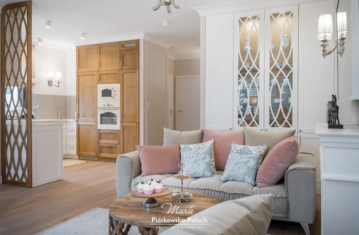 Mieszkanie zaprezentowane w tym wpisie miało niebanalne zadanie – dorównać szykiem, elegancją i klasą współczesnej Coco. To wyzwanie przyjęła architektka Marta Piórkowska – Paluch. Nowe wnętrze nabrało nie tylko nowych barw, ale i kobiecych kształtów. Zmieniony układ pomieszczeń doskonale wpasował się w styl życia pani domu.