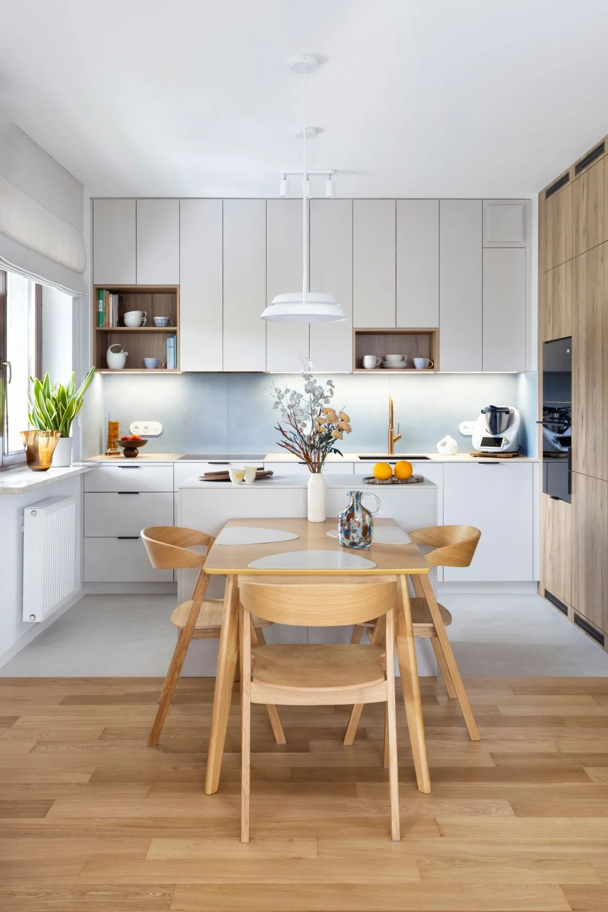 Wnętrze łączy w sobie ciepło domowe z nowoczesnym sznytem – idealne tło dla codziennego życia trzyosobowej rodziny.