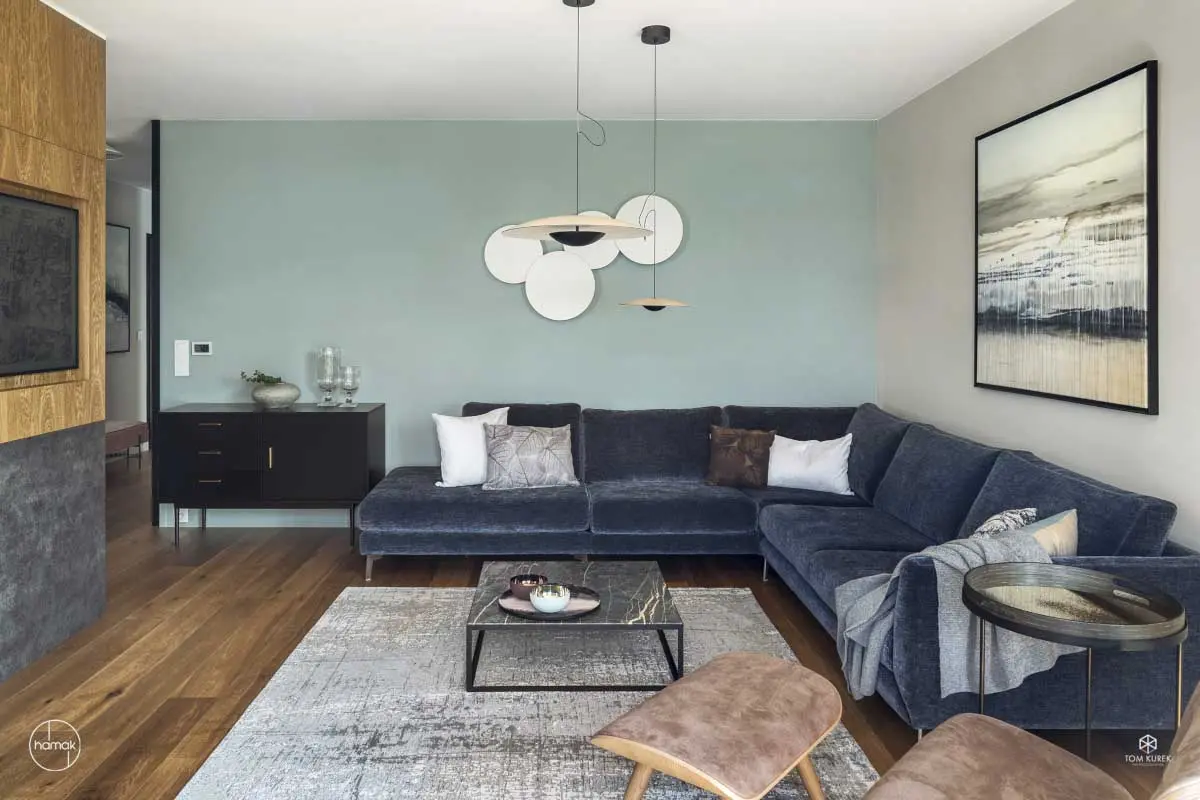 Estetyka wnętrz łączy w sobie elementy klasyki i lekkiej ekstrawagancji. Obok nawiązań do stylu art deco pojawiają się mocne, nowoczesne akcenty. Znajdziemy tu zarówno meble i dodatki z półki “nowości”, jak również odrestaurowane klasyki PRL. Całość uspójniają ciepłe barwy.
