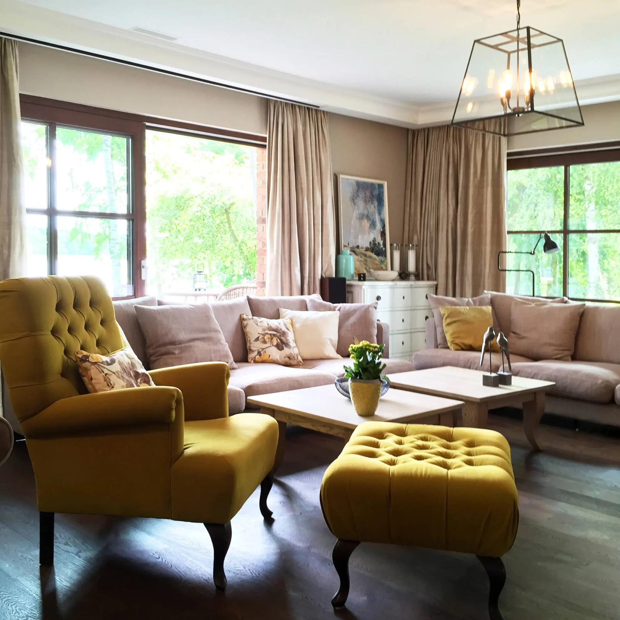 Dom jest dwupiętrowy o powierzchni 250m2, usytuowany jest przy samym jeziorze w malowniczym miasteczku. Na parterze otwarta strefa dzienna, dzięki temu kuchnia, jadalnia i salon przenikają się wzajemnie. Z racji zainteresowań kulinarnych inwestorów meble kuchenne zostały specjalnie przygotowane pod zabudowę profesjonalnego pieca gastronomicznego, którym może pochwalić się niejedna restauracja. Wnętrza domu utrzymane są w stonowanej i ciepłej kolorystyce – królują beże, drewno, cegła. Jedynym mocnym akcentem kolorystycznym jest musztardowy fotel z podnóżkiem w salonie. Wysokiej jakości użyte materiały, jedwabne zasłony, kamienne płytki na posadzce w holu, dębowa stolarka drzwiowa podkreślaj wyjątkowy charakter tego wnętrza.