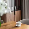 Dla delikatniejszego efektu w dwóch pomieszczeniach użyto również dodatków w kolorze mosiężnym. Warto wyszczególnić w tym projekcie kilka elementów: