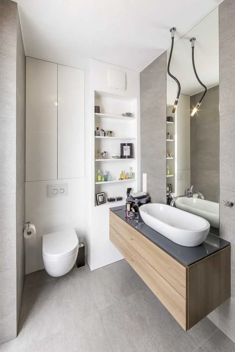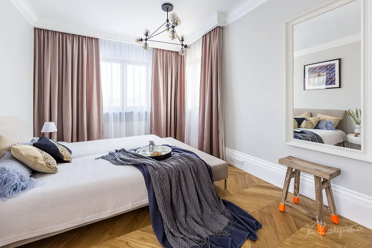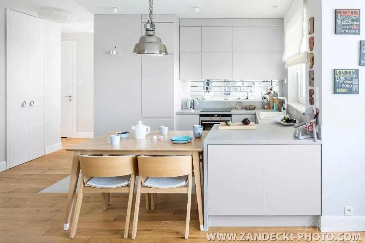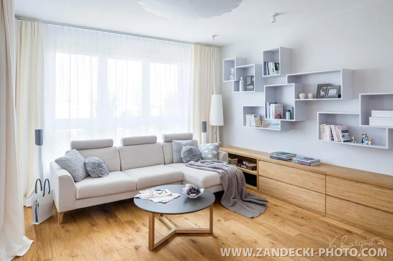 Projekt mieszkania nad jeziorem zlokalizowanego na… osiedlu Saska na warszawskiej Pradze Południe w sąsiedztwie zbiorników wodnych Balaton i Gocław. Mieszkanie zostało pomyślane w celu stworzenia zakątka, w którym można się wyciszyć i zrelaksować po ciężkim i stresującym dniu. Ot, oaza spokoju niemal w centrum wielkiego miasta. Wydaje się, że takie założenie zostało spełnione. Perłowa szarość zestawiona z łagodną bielą, jasnym drewnem i niebieskimi akcentami oraz duże okna, przez które światło przyjemnie wlewa się do wnętrza, działają niezwykle kojąco. Zobaczcie poniżej galerię zdjęć.