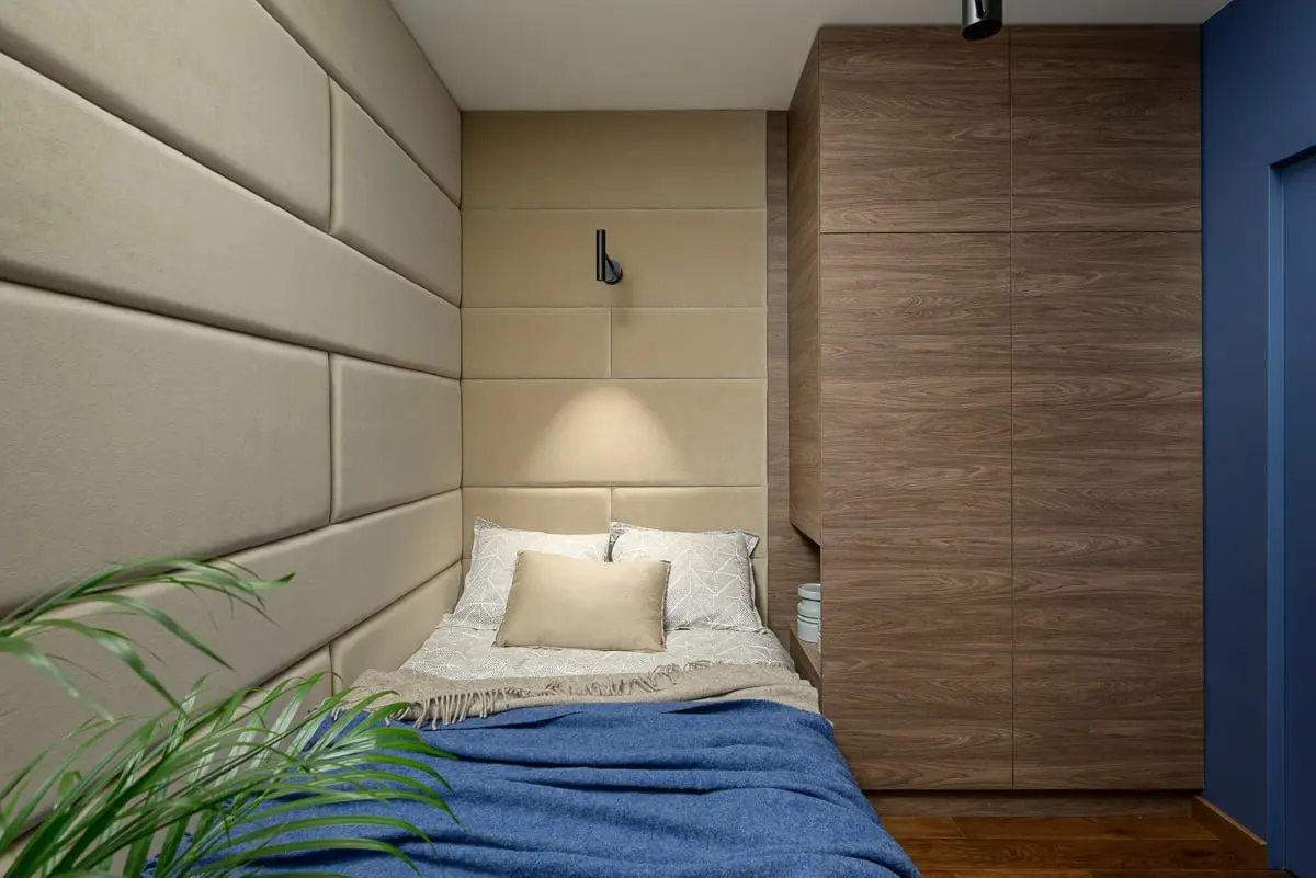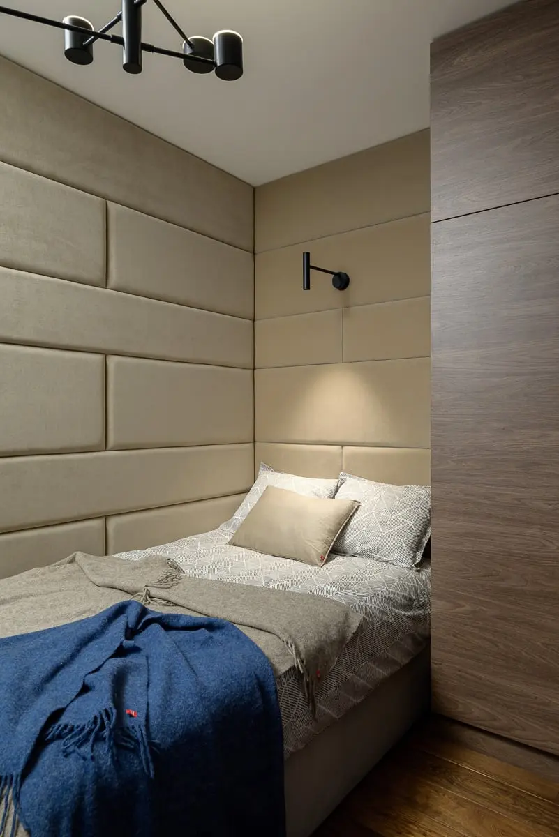 W całym apartamencie nie dostrzeżemy żadnego przypadkowego rozwiązania, zgodnie z założeniem, że nic nie powinno zakłócać wygody jego użytkowania. Ukryte drzwi wewnętrzne pomalowano na kolor ścian, co dodaje wnętrzu przestronności. Z kolei ściana telewizyjna – w całości ze spieku kwarcowego – odbija światło zarazem „ukrywając” telewizor – Zamiłowanie właścicieli do nowoczesnych technologii – w mieszkaniu działa system smart home, jest tam zestaw do filtracji wody i jednostka klimatyzatora w każdym pomieszczeniu – idzie w parze z upodobaniem do wnętrz uporządkowanych, nieprzeładowanych, takich, które łatwo się sprząta. Nawet kocie kuwety znalazły się więc w specjalnie zaprojektowanych przestrzeniach w obrębie zabudowy – podkreśla autorka aranżacji.