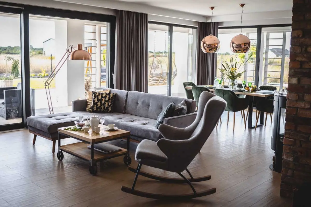 Industrialny salon połączony z jadalnią