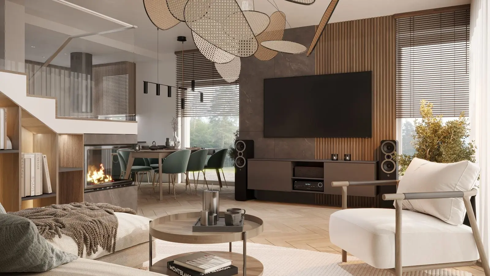 Projekt tego domu to wyjątkowy projekt, który łączy w sobie nowoczesne podejście do architektury z wykorzystaniem przyjaznych dla środowiska materiałów. Drewno, jako główny komponent aranżacji, nadaje całemu wnętrzu ciepłą i naturalną atmosferę.