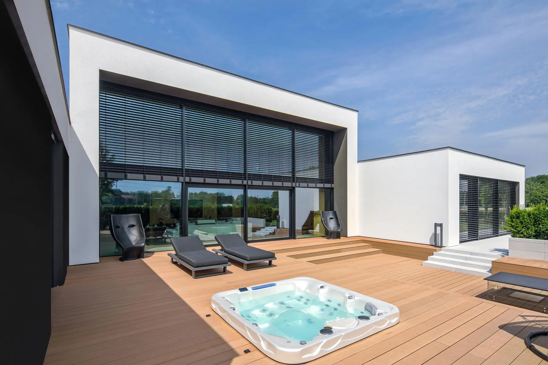 Koncepcja architekta otworzyła nieskończone możliwości rozbudowy domu i uzupełniania go o kolejne bryły na przykład z funkcją przestrzeni gościnnej czy relaksacyjnej. Swobodę w formowaniu, ustawianiu i dokładaniu brył udało się osiągnąć także dzięki usytuowaniu budynku w centralnej części działki. Aby idea nieskończoności mogła się urzeczywistnić, ważne było także trzymanie się zasady organizującej cały projekt – każda funkcja musiała zmieścić się w danym prostopadłościanie, by bryły pozostały w styku, bez przenikania się.