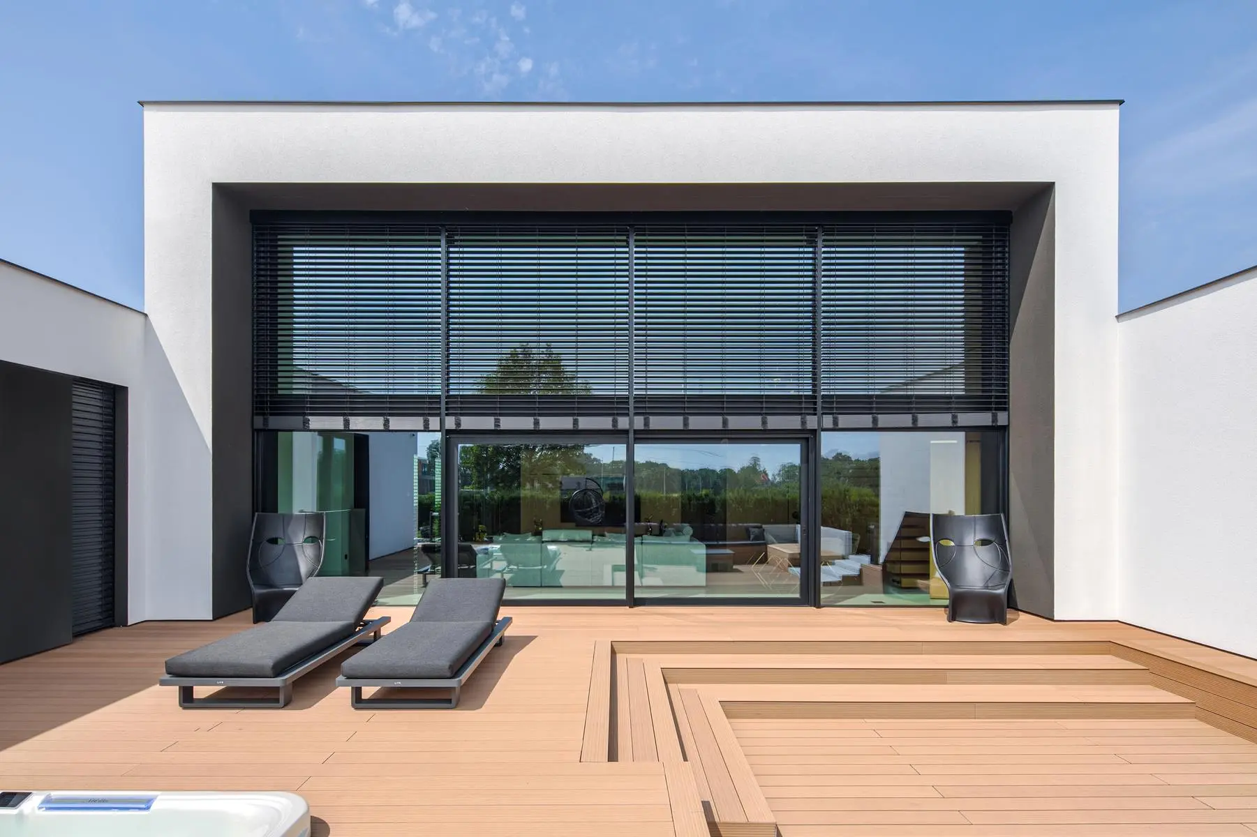 Klarowny podział na bryły z wpisanymi w nie funkcjami wprowadza naturalny porządek i organizuje przestrzeń. Wywodzący się z tradycyjnego podziału układ funkcjonalny nabiera nowego wyrazu dzięki świeżemu spojrzeniu architekta. Bryły współdziałają w niezwykle precyzyjnie określony sposób. Nie przenikają się, a jedynie pozostają w styku. Przylegając do siebie nawzajem, stwarzają szansę uzupełnienia domu o kolejne moduły – bez straty dla spójnej i przemyślanej kompozycji.