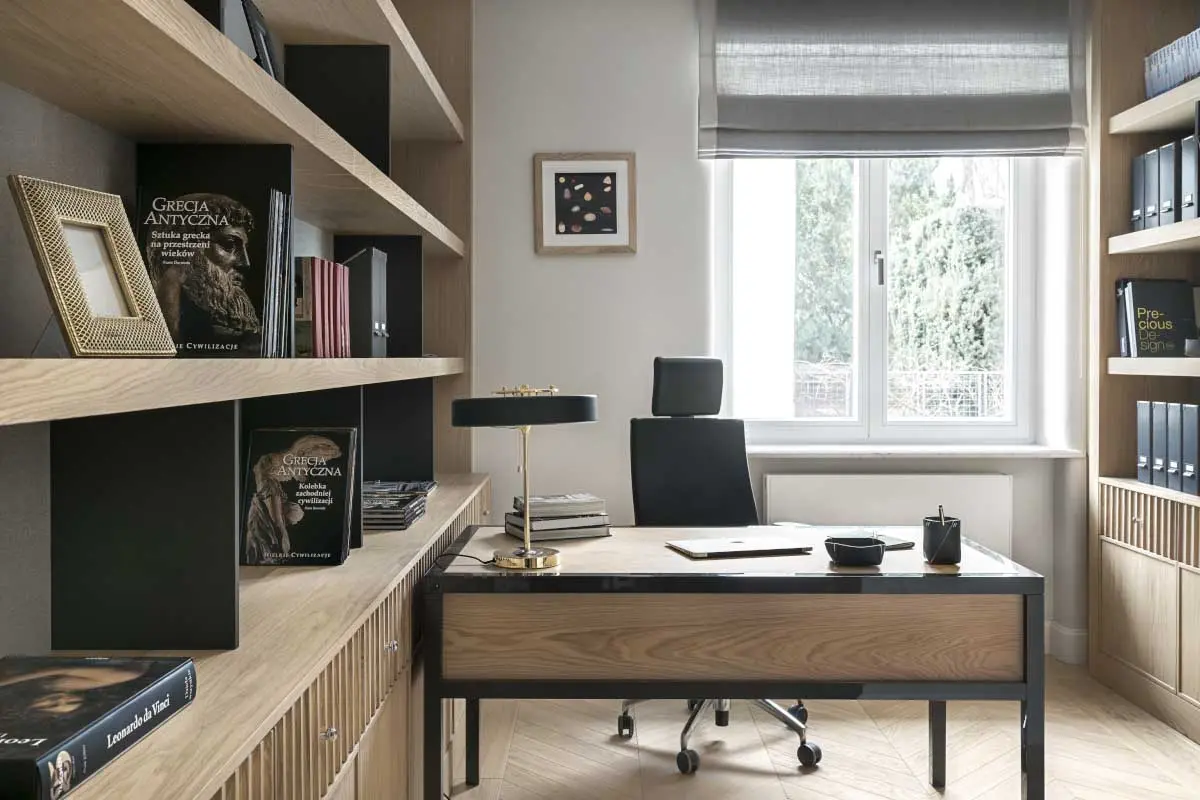 Katarzyna Kraszewska stanęła przed wyzwaniem zaprojektowania 750 – metrowego domu w stylistyce ponadczasowej elegancji z nutką lat 30. minionego wieku. Pomimo, że renowacja tak ogromnej przestrzeni, która dodatkowo ma swoją unikalną, bogatą historię, wymagała ogromnego nakładu pracy, to zapewne taki projekt jest marzeniem każdego specjalisty ze świata architektury. Co więcej, inwestorzy całkowicie zdali się na profesjonalizm architekta, w efekcie dając Katarzynie Kraszewskiej wolną rękę. W rezultacie powstał bardzo rodzinny, ciepły i przytulny dom. Dużą ilość drewna i stonowaną kolorystykę przełamuje bardzo starannie dobrana sztuka nowoczesna.