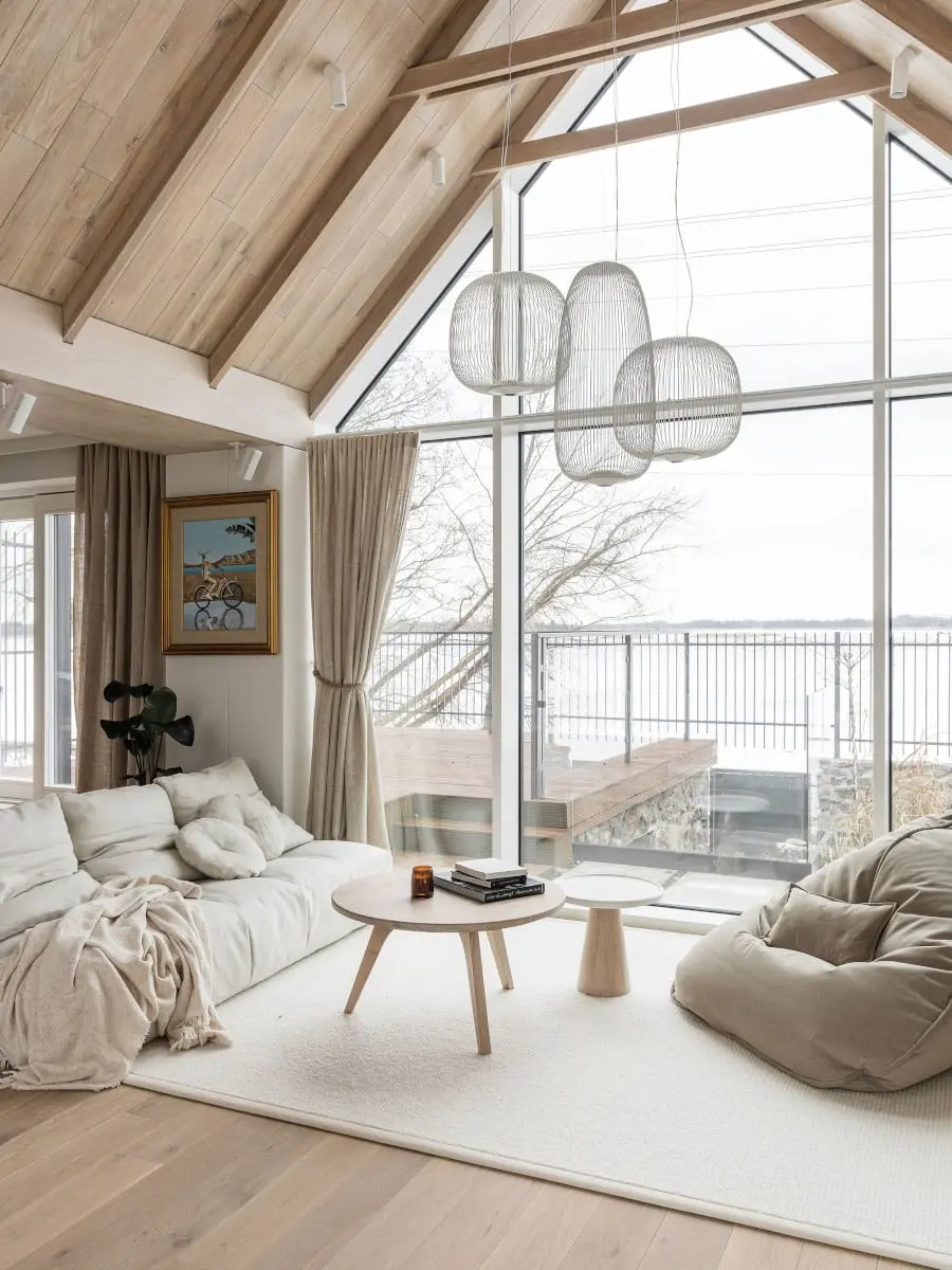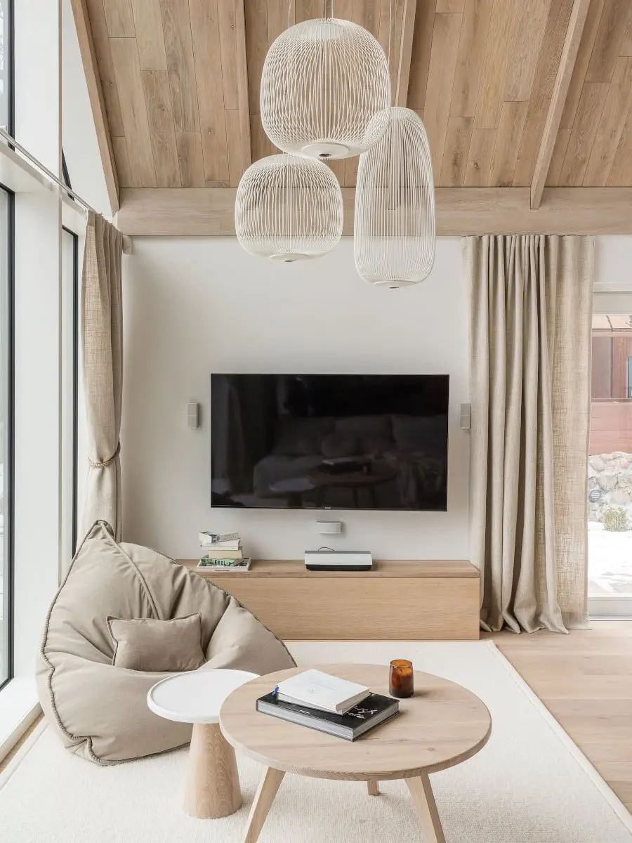Widok za oknem wydaje się być najpiękniejszą dekoracją wnętrza. Minimalistyczna sceneria jak najbardziej sprzyja skupieniu uwagi na relaksacyjnym oddziaływaniu natury. Zastosowanie wysokiej jakości wyposażenia broni się samo a w połączeniu z naturalną ornamentyką tworzy ponadczasowy projekt, który wraz z upływem czasu zyskuje na szlachetności.