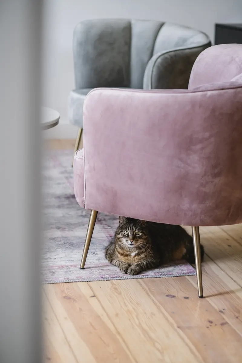 Gdański Wrzeszcz jest niezwykle urokliwą dzielnicą, gdzie zabytkowe wille i kamienice, przeplatają się z współczesnymi budynkami. Mieszkańcy cenią tę część miasta za dużą ilość zieleni i dobrze zachowaną architekturę z różnych okresów. Właśnie tutaj swoje wymarzone mieszkanie znalazła młoda para z kotem Romanem. Znajdujący się na trzecim piętrze kamienicy, 70-cio metrowy lokal, został zaaranżowany przez pracownię bo/sko. Zgodnie z gustem i preferencjami inwestorów, powstało eklektyczne wnętrze, w którym panuje retro glam, welur i róż. Natomiast różnorodne barwy i faktury tworzą niebanalne zestawienia, oddając dwa silne charaktery jego mieszkańców.