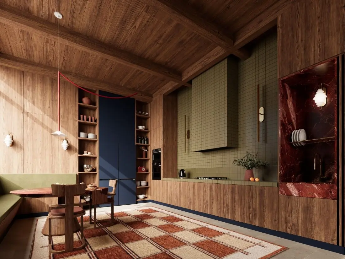 Retro w nowoczesnym wydaniu. Projekt kuchni w stylu mid-century modern