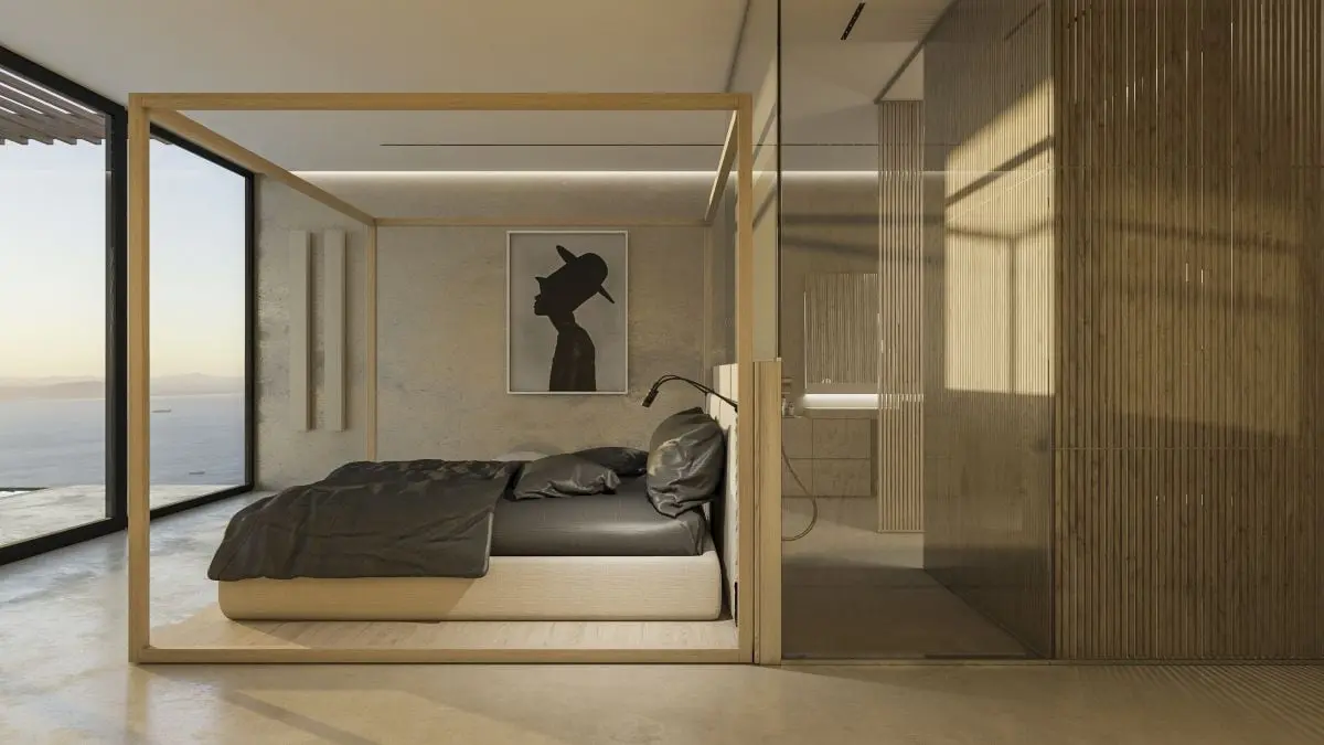 Koncept Natalii Teixeiry i Katarzyny Beresińskiej z TK Architekci, jest ponadczasową aranżacją łączącą monochromatyczne barwy i klasyczne zestawienie drewna z marmurem. Projektantki zrezygnowały z nadmiaru elementów dekoracyjnych na rzecz jasnych i otwartych przestrzeni, zapewniających komfort oraz wypoczynek. Niewątpliwie największym atutem, prawie trzystumetrowej parterowej rezydencji, jest widok na Atlantyk. Wnętrze zostało spersonalizowane i dostosowane do trybu życia oraz gustu artystycznego klientów. W domu znajdują się: przestrzeń dzienna, w której umieszczono otwartą kuchnię z jadalnią i salonem, sypialnia z dyskretną toaletką i łazienką wyłożoną drewnem, a także wygodna i świetnie wyposażona przydomowa siłownia.
