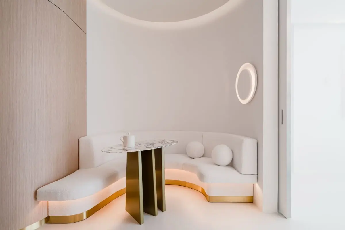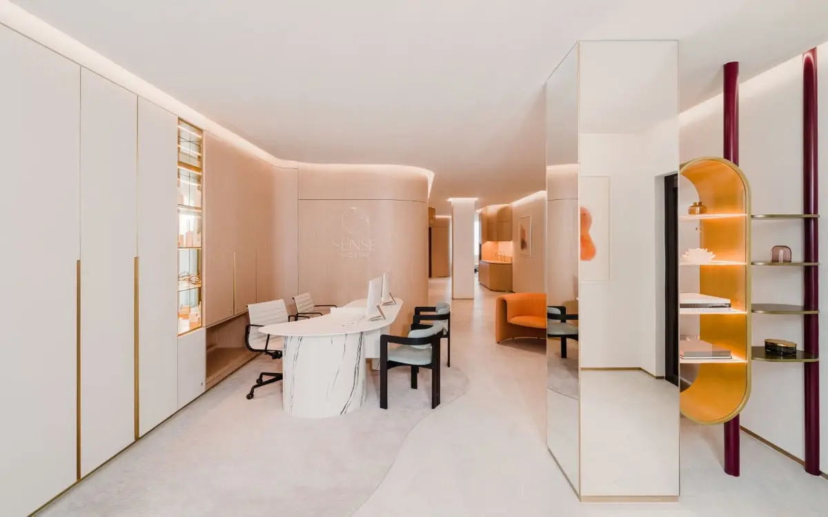 Zaangażowanie pracowni Boris Kudlička with Partners w dostarczenie idealnego doświadczenia pobytu w Sense Med Concept zaczyna się już od wejścia, niosącego wrażenie niewymuszonego luksusu i elegancji. Poszczególne pomieszczenia rozmieszczono dbając o poszanowanie prywatności i intymności podczas zabiegów. Wyposażenie gabinetów opracowano łącząc ergonomię użytkowania z wysmakowanym wzornictwem. Jednym z akcentów powtarzającym się w wielu gabinetach są imponujące lustra marki Flos.