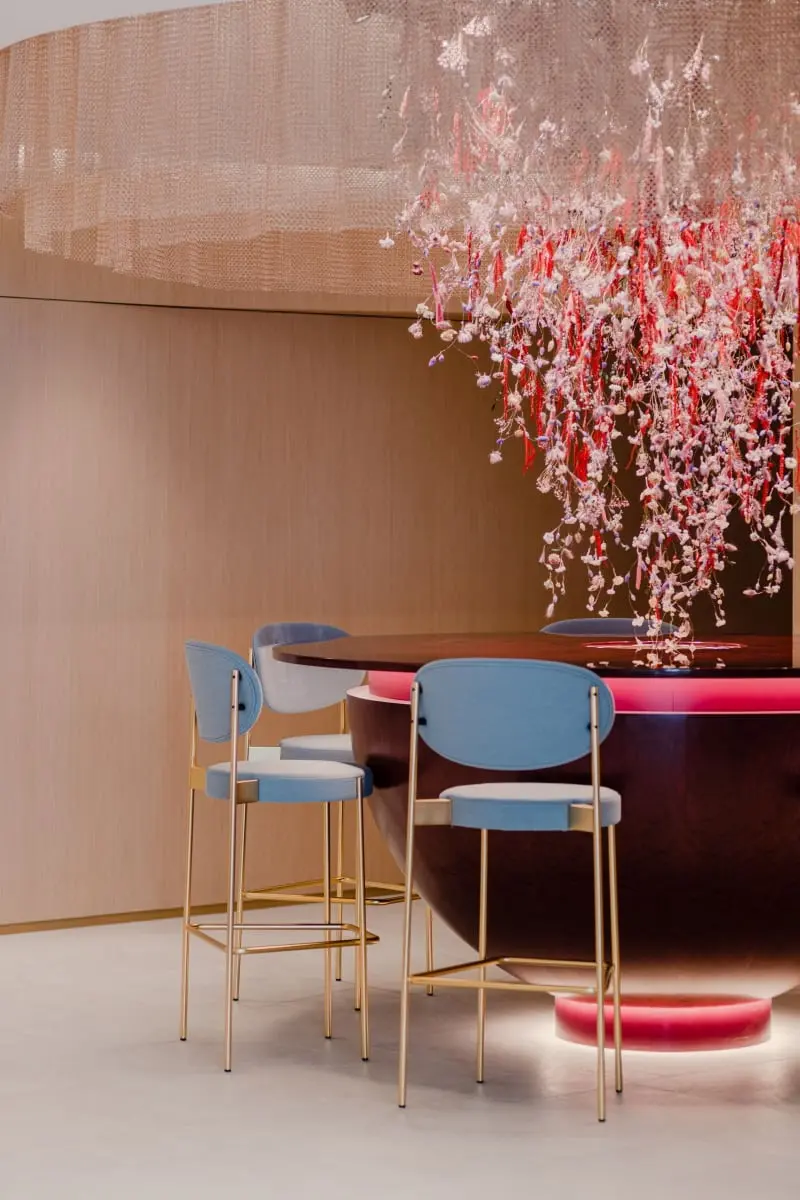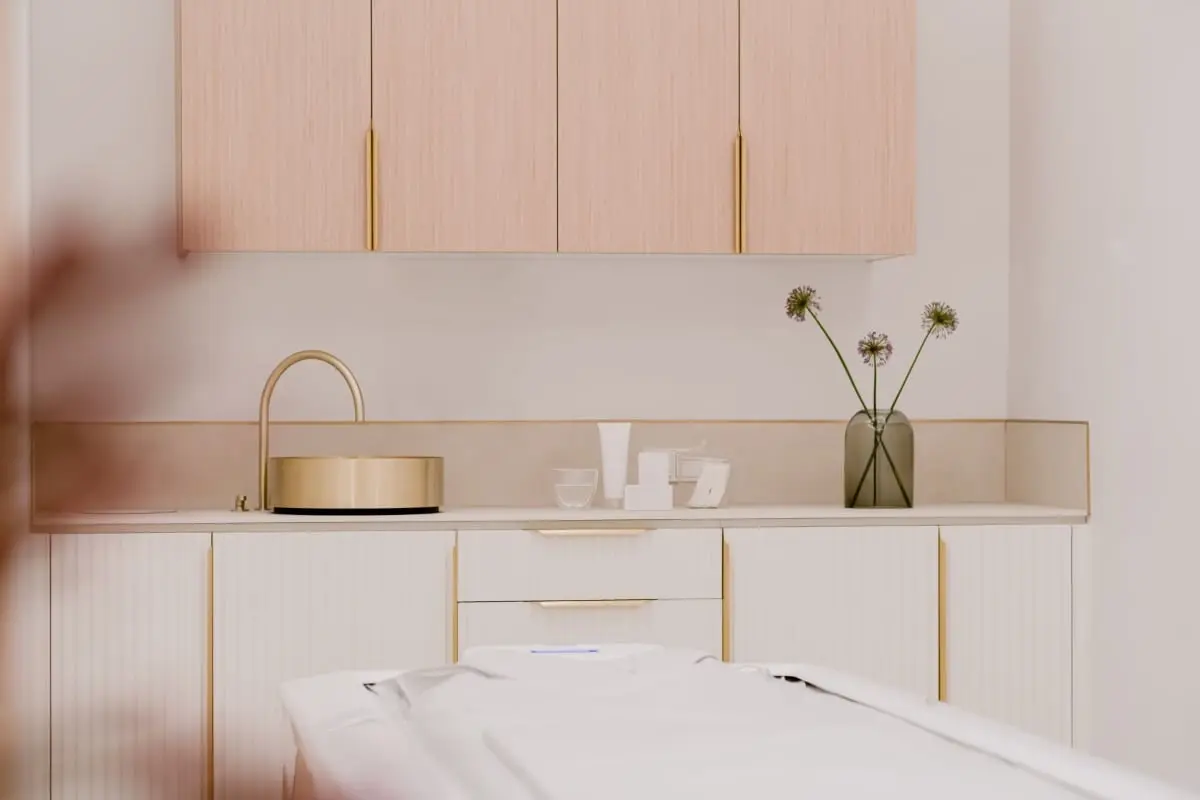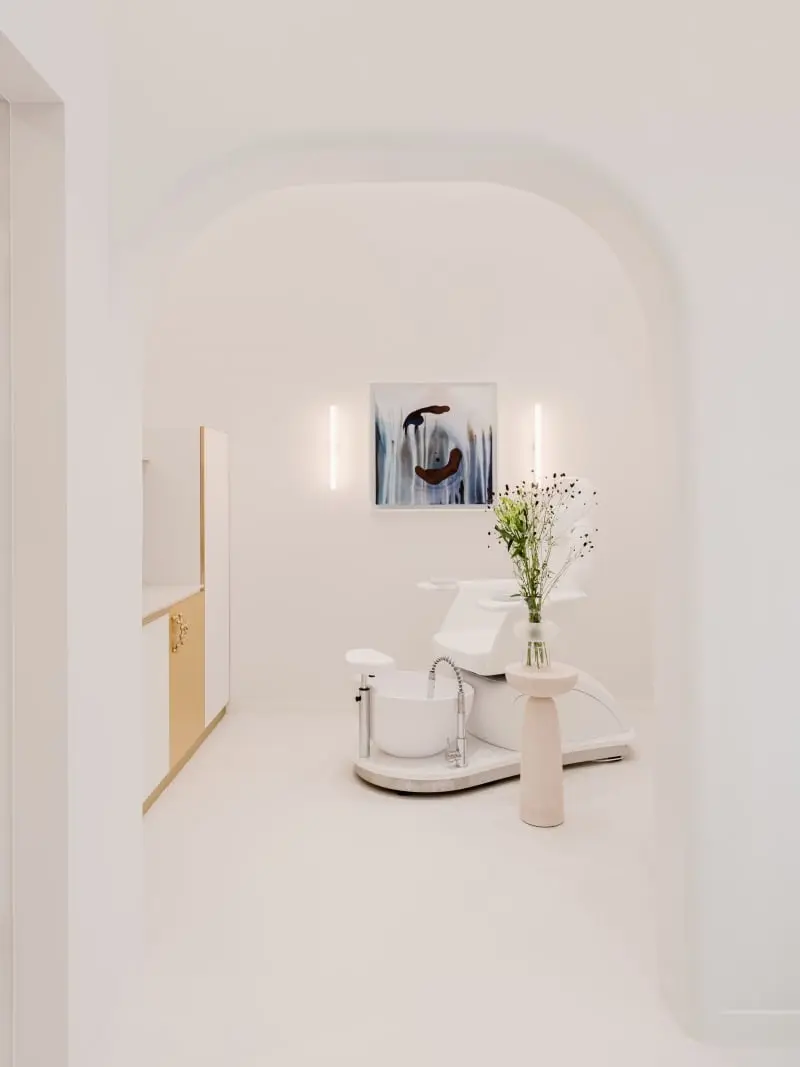 Na obu kondygnacjach znajdują się niezależne recepcje z poczekalnią dla klienta oraz strefy relaksu. Na pierwszym piętrze stworzono herbal bar z wyjątkową instalacją z suszonych kwiatów, autorstwa Eweliny Skurosz. Miejsce to pełni funkcję zarówno poczekalni, jak i relaksu po zabiegu przy filiżance herbaty. Sam herbar bar tworzy mebel w formie misy stworzonej na zamówienie, wykończonej fornirem w nietypowym wybarwieniu. Blat pokryto żywicą w specjalnej technologii, łączącej kilka kolorów.