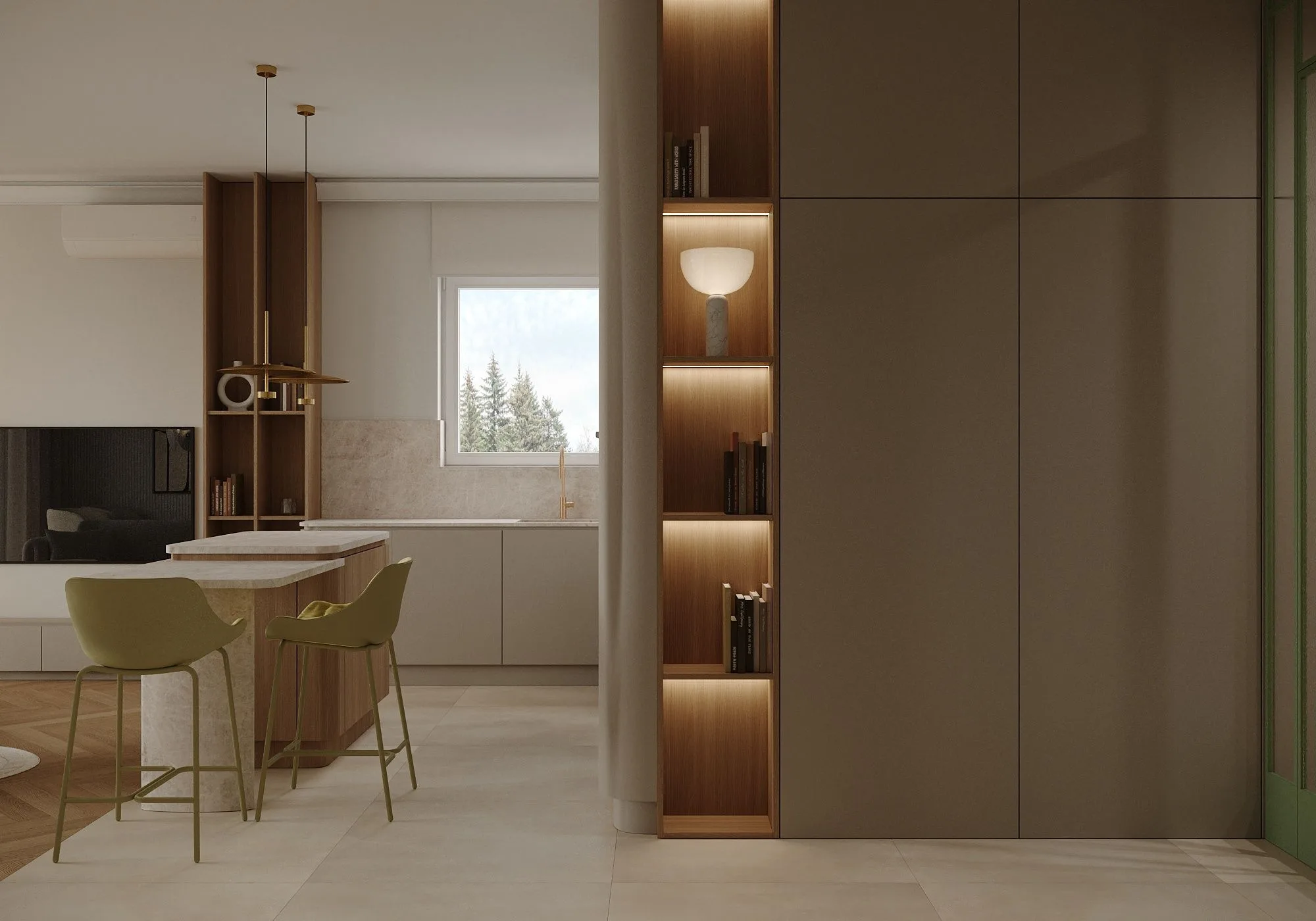 Wnętrze segmentu na warszawskim Wawrze pozostaje ciepłe, ale nie sentymentalne. Odważne, ale wolne od dosłowności. Eleganckie, lecz głęboko zakorzenione w codziennym życiu. To architektura, która nie tylko organizuje przestrzeń, ale również współtworzy nowy rozdział — spokojny, piękny i prawdziwie osobisty.