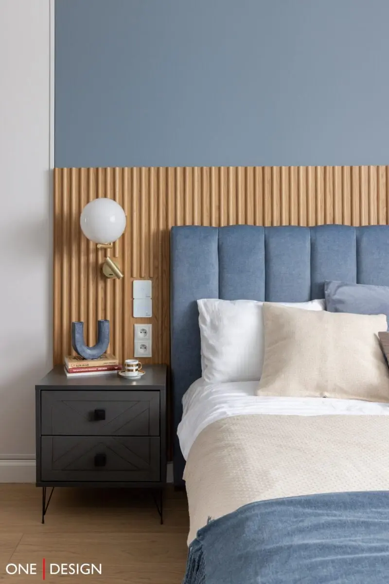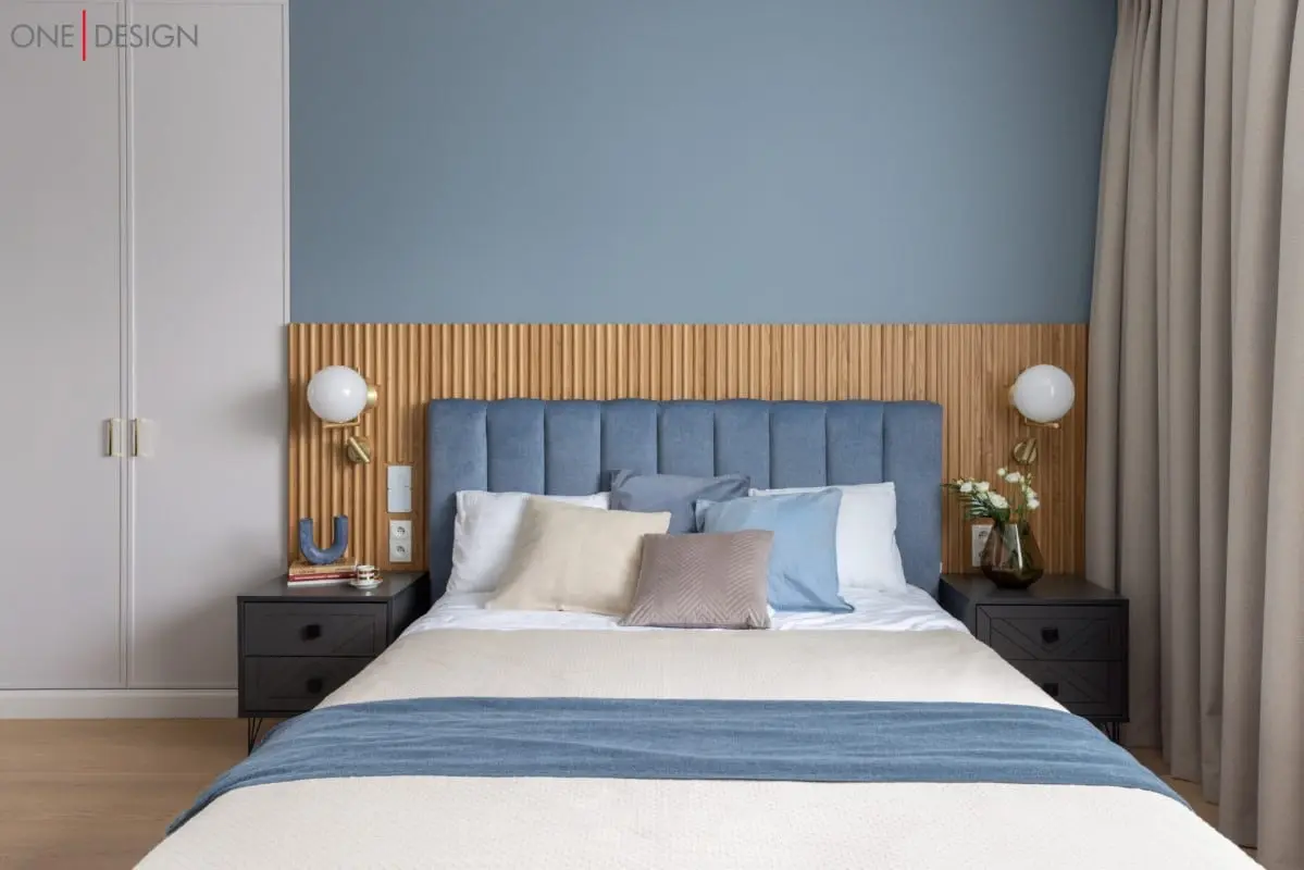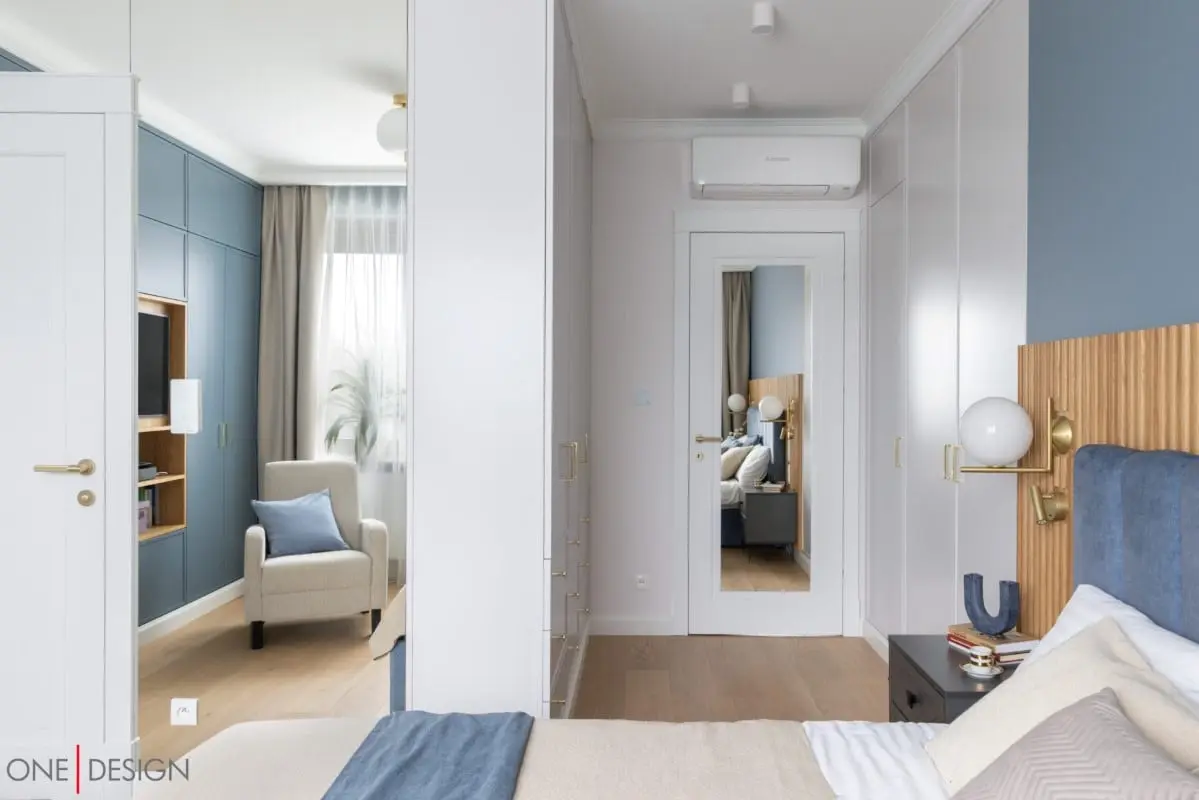 Dziś zaprosimy Was do domu dla rodziny 2+2 znajdującego się w segmencie. Projekt jest utrzymany w stylu nowoczesnym, jednak nie brakuje w nim wielu klasycznych odniesień, które tworzą niezwykle nastrojowy klimat. Kolorem przewodnim aranżacji jest pastelowy błękit, odważnie skontrastowany z bakłażanowymi plamami koloru. Całość otula drewno oraz złoto zastosowane w formie prostych detali dekoracyjnych. Za projekt odpowiada pracownia One Design.