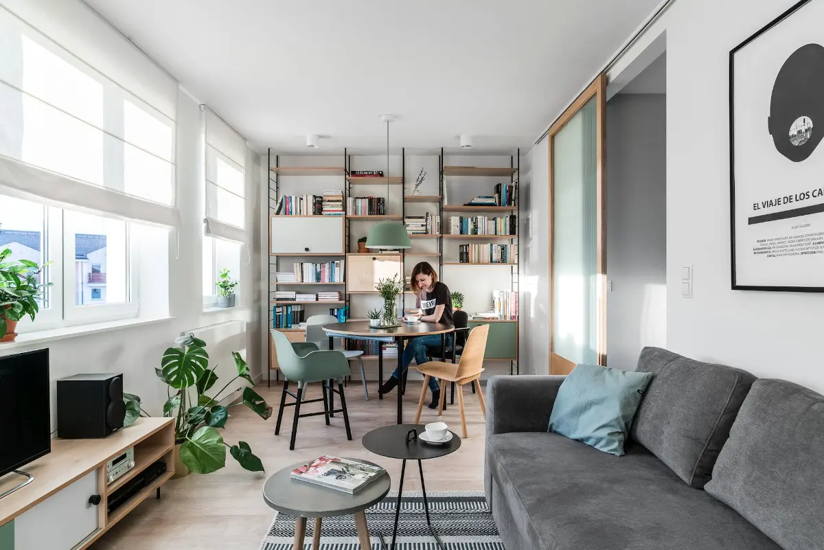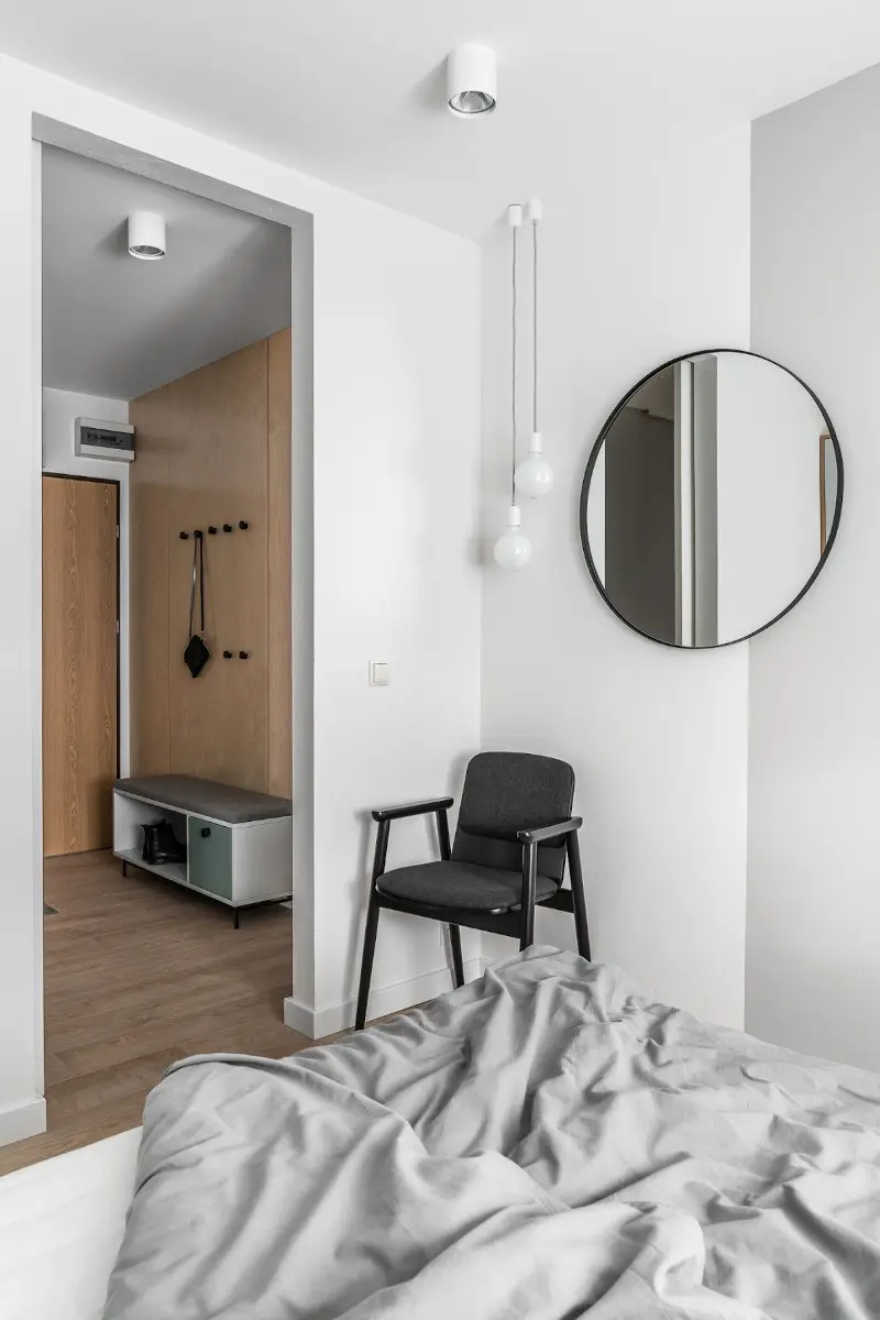 Zaprezentowane w dzisiejszym wpisie 45 – metrowe mieszkanie jest zaprojektowane w stylu skandynawskim w nowoczesnym wydaniu. Naturalna brzozowa sklejka, w połączeniu z pastelowym seledynowym odcieniem zieleni, stanowi motyw przewodni projektu. Tłem dla tego zestawienia jest biel i jasna szarość. Jak udowadnia Pracownia Raca Architekci, w niewielkiej przestrzeni liczy się przede wszystkim ergonomia oraz bezpretensjonalna, uporządkowana, spokojna i neutralna aranżacja. Estetyka łącząca w sobie szwedzkie hygge i lagom sprawdza się w tej roli idealnie.