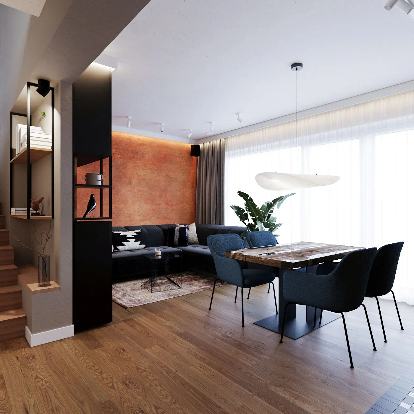 Spójne mieszkanie nie musi oznaczać powtarzania tych samych rozwiązań w każdym pokoju. Wystarczy motyw przewodni — kolor, materiał albo detal — który przewija się przez wnętrze jak nić w dobrze napisanej historii. Dzięki temu wszystkie pomieszczenia „grają do jednej bramki”, a każde nadal ma swój własny charakter.