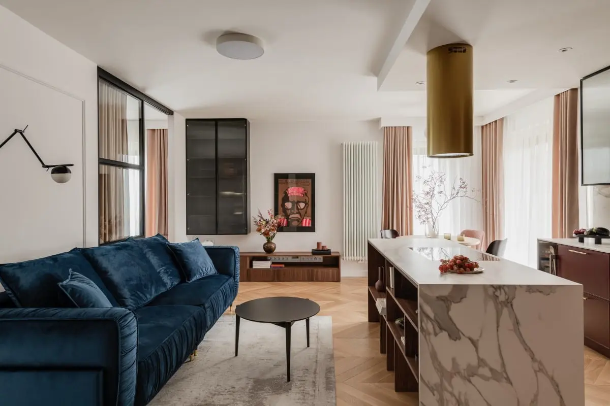Postawiliśmy na nietuzinkowość i unikatowość wnętrz, dlatego większość zastosowanych rozwiązań została zrealizowana na indywidualne zamówienie. Jednocześnie zadbaliśmy o to, by mieszkanie zyskało ponadczasowy klimat, dojrzewając z upływającym czasem.