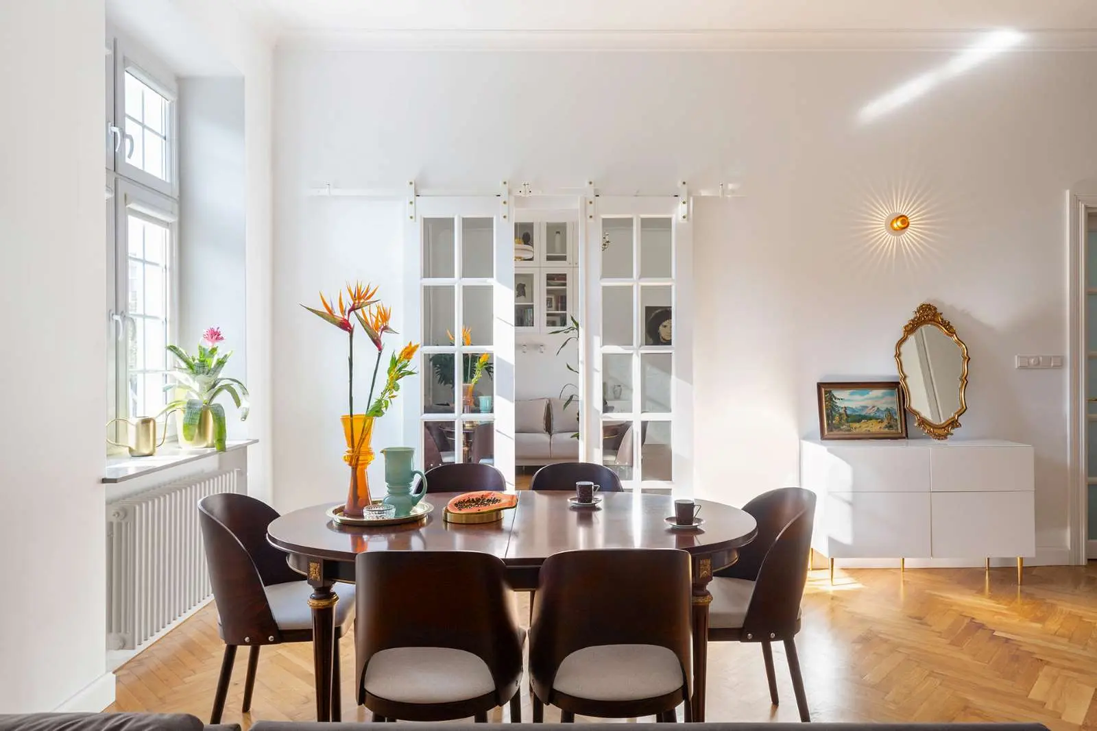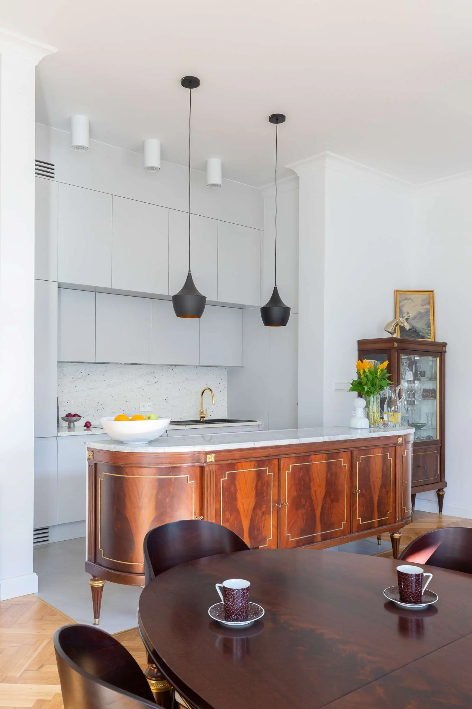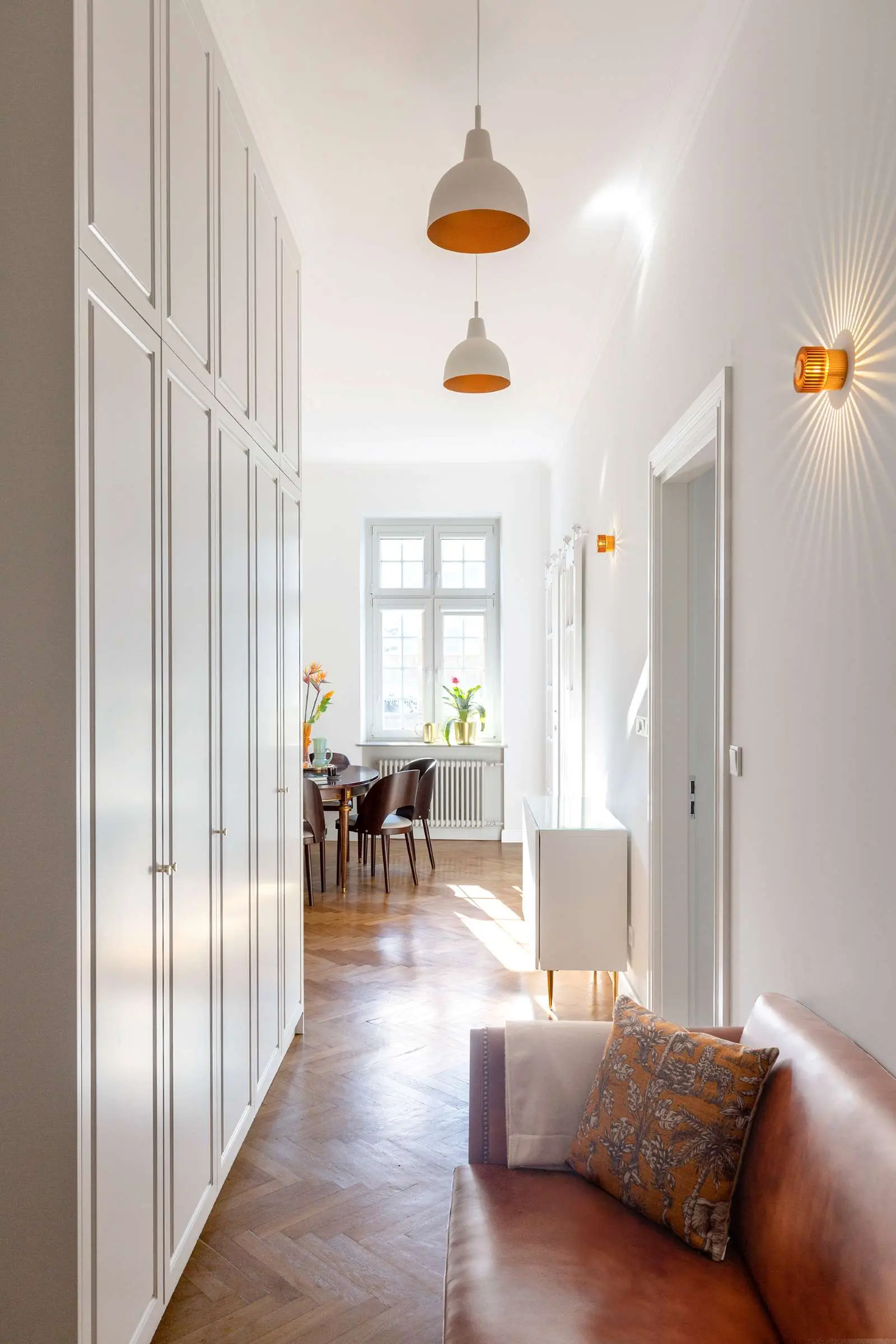 Architektka z niezwykłym wyczuciem połączyła stare z nowym, dzięki temu uzyskano nietuzinkową realizację mieszkania. Z założenia architekt Małgorzata Jaworska chciała zachować równowagę między elementami stylowymi i nowoczesnymi oraz dopasować je do siebie. Zgrać zdobne meble i robioną na wymiar zabudowę. Całe wnętrze jest pełne naturalnego światła, pozbawione nadmiaru bodźców.