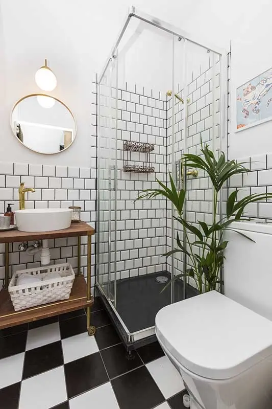 W zabudowie znalazł się też wysuwany blat roboczy, w razie gdyby miejsca do przygotowywania posiłków było za mało. Na antresoli poza łóżkiem zmieściła się też komoda na pościel i bieliznę. Pozostałe funkcje były już dużo prostsze do realizacji. Wygodna sofa z możliwością spania stanęła naprzeciwko biurka. Relaksując się na niej w cieniu dużej rośliny możemy oglądać wiszące na ścianie obrazki. W roli stolika kawowego – stara skrzynia, a obok niej turecka pufa. Wyposażenie w stylu retro pojawia się w wielu miejscach. Na przykład w łazience, zamiast typowej szafki łazienkowej mamy stary barek na kółkach. Niecodzienne elementy, czasem bardzo małe, sprawiają, że pomimo małego metrażu można spędzić u Krystiana kilka godzin i poczuć się jak w galerii na wystawie.