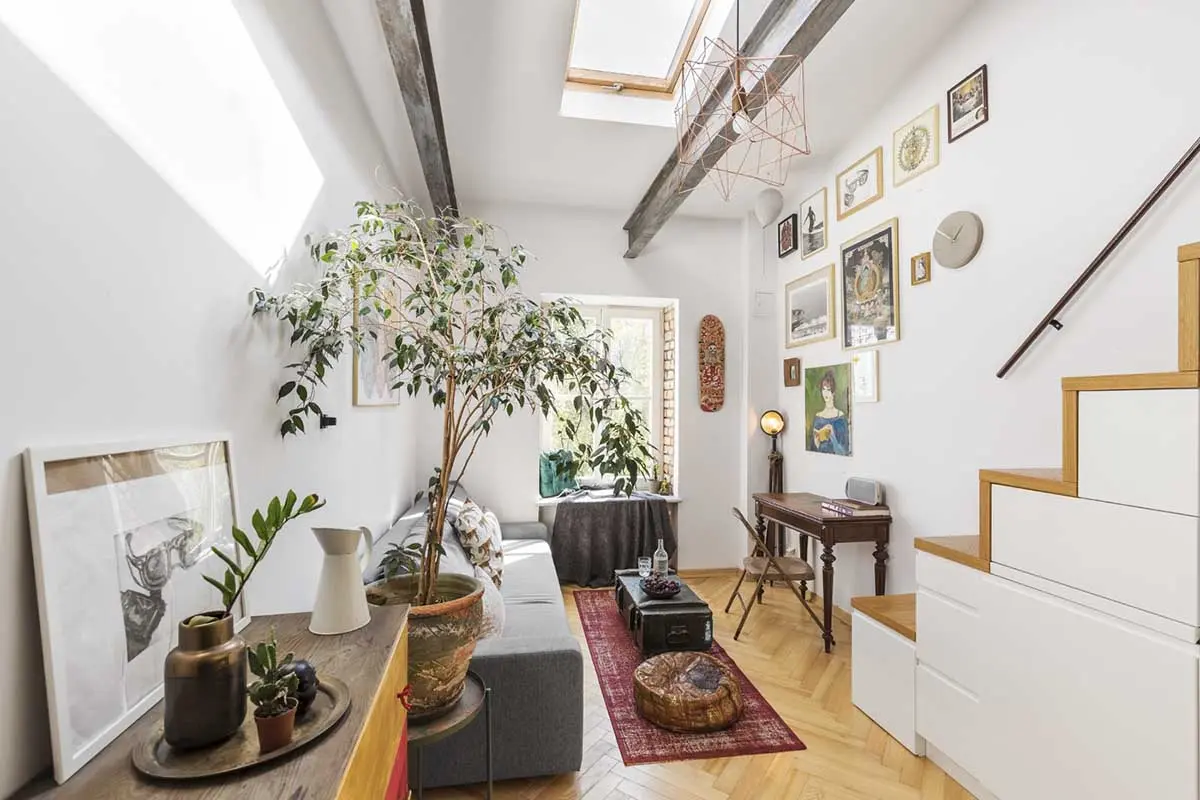 Przy projektowaniu nietypowych przestrzeni, które mają swoje ograniczenia – takie, jak metraż w tym przypadku, istotne jest określenie priorytetowych potrzeb i upodobań przyszłego mieszkańca. Krystian poprosił, aby mieszkanie było w pełni funkcjonalne, nie będąc jednocześnie “zagracone” przez nadmierną ilość mebli. Ważne było również pozostawienia wnętrza w takim stanie, aby mogło w przyszłości żyć swoim życiem. Artysta cały czas tworzy nowe prace, przywozi pamiątki z podróży czy też kupuje różne, ciekawe przedmioty na targach staroci. Te elementy stanowią ważną część wnętrza i nadają mu artystyczną atmosferę.