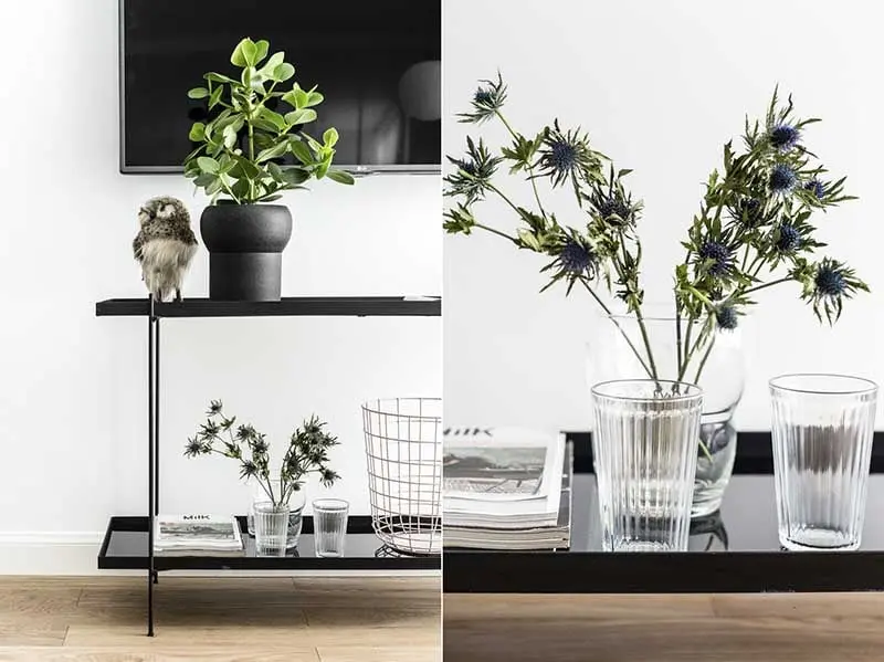 W dzisiejszym wpisie pokażę Wam wnętrze, które zachwyca przytulnością i niewymuszoną elegancją. Taki efekt udało się uzyskać dzięki wykorzystaniu klasycznych materiałów, na przykład podłoga jest wykończona drewnianymi deskami podłogowymi. Dla urozmaicenia aranżacji pojawiły się pewne smaczki, które dodają mieszkaniu charakteru i sprawiają, że staje się mniej przewidywalne. Mam na myśli głównie dywany w zygzaki, oryginalną lampę podłogową, a także dużą ilość roślinności, w tym hitową monsterę.