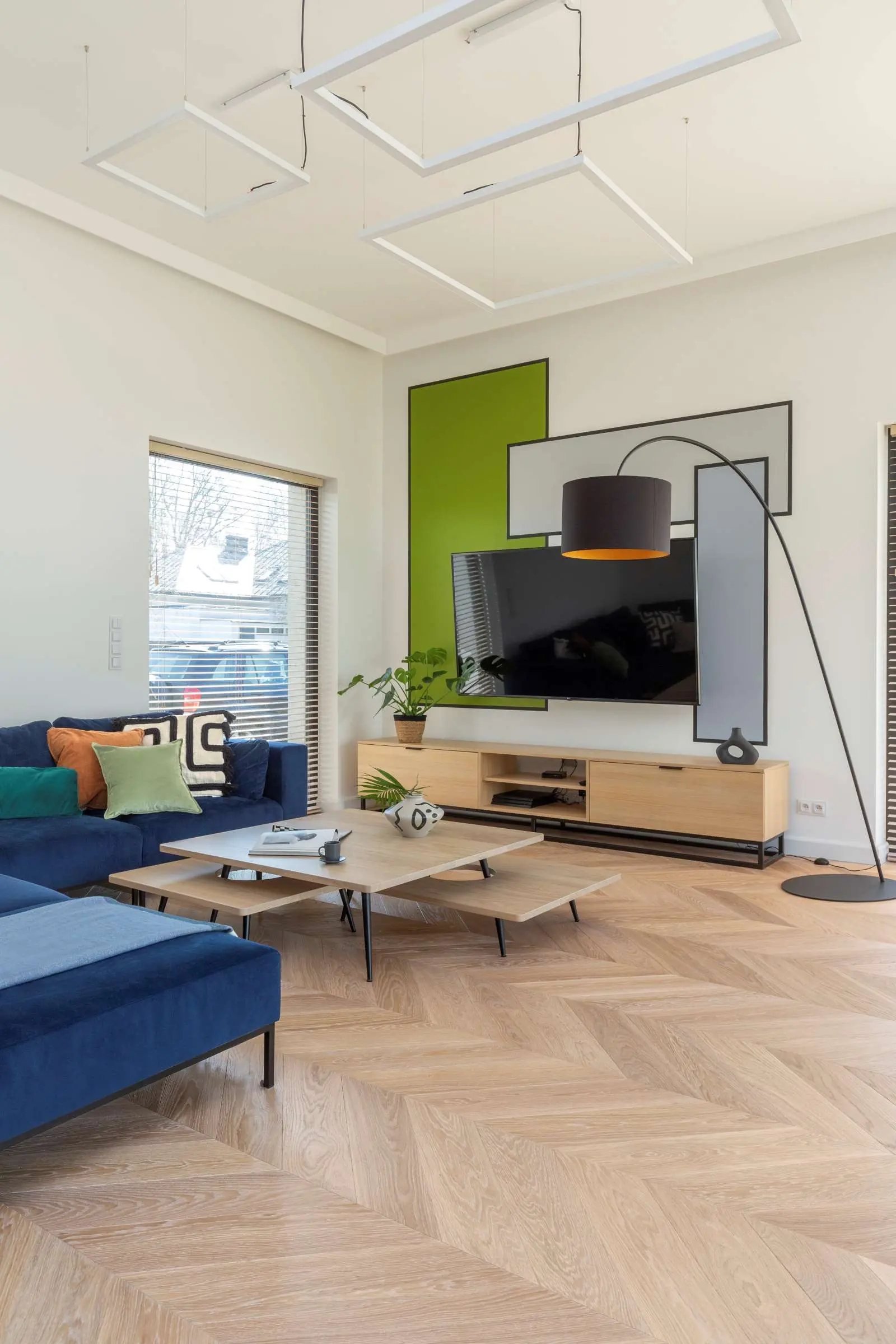 Bez względu na to, czy przez nasze wymarzone mieszkanie przemawiać miałby spokój i minimalizm lub szalony tygiel stylów, najważniejsza w projektowaniu i planowaniu jest pamięć o spójności. Co przez nią przemówi? W tej kwestii każdy z nas musi zadecydować sam. Kto wie, być może zdecydujecie się na wdrożenie do domowego zacisza ukochanego koloru, tak jak w przypadku prezentowanej w niniejszym artykule aranżacji, będącej królestwem błękitów i granatu? Warto pamiętać, że słowo ,,barwa’’ nie ogranicza nas jedynie do farb. Współczesny rynek obfituje w designerskie dodatki o różnych kolorach. Mogą to być szafki przyciągające nie tylko solidnością i funkcjonalnością, ale również niebanalnym wykonaniem, a także wszelkiego rodzaju lampy. Jako, że styl nowoczesny cechuje przede wszystkim oszczędność formy, przez wszystkie urozmaicenia w naszym domu przemawiać powinna przede wszystkim prostota.