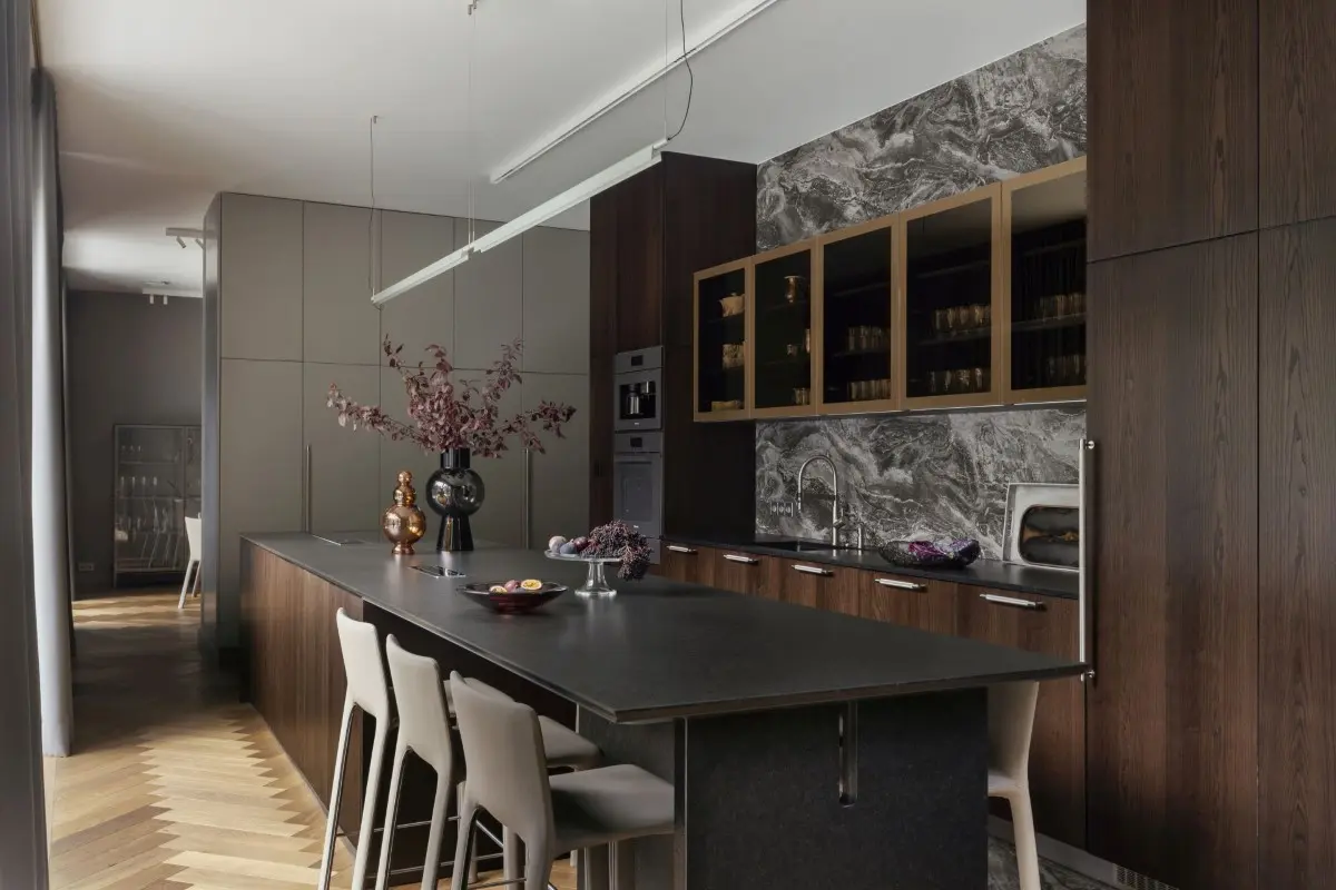 W stworzonym przez mow.design projekcie historia na każdym kroku spotyka się z nowoczesnością. Każdy detal, od starannie dobranych dzieł sztuki po wyrafinowane dodatki, został zaplanowany z myślą o stworzeniu właścicielom miejsca, które będzie ich codziennie inspirować. Wnętrza stanowią więc idealne tło dla współczesnego życia, łącząc w sobie elegancję i funkcjonalność, a jednocześnie odzwierciedlając indywidualny charakter mieszkańców.